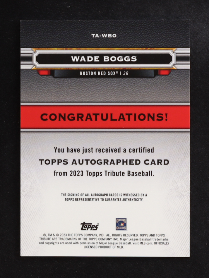 Wade Boggs 2023 Topps Tribute Autographs Purple #TAWBO #47/50