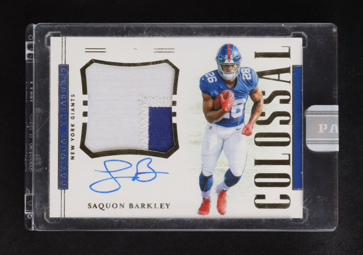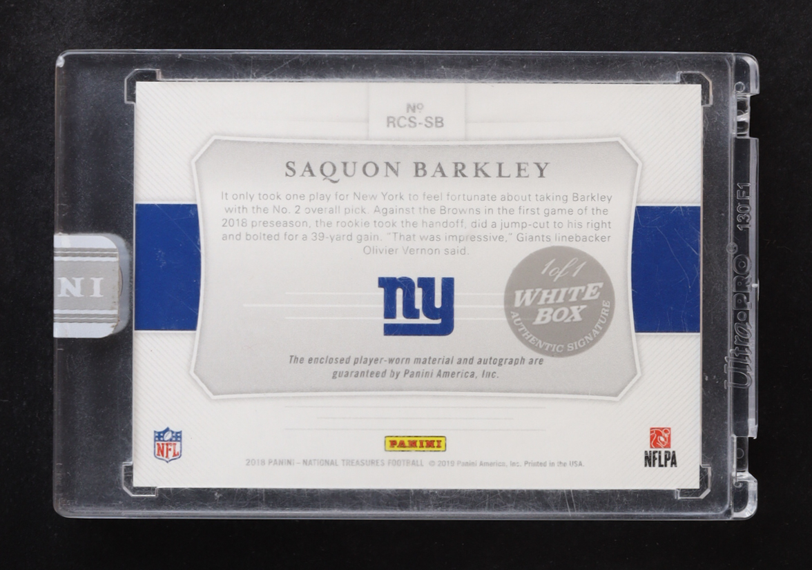 Saquon Barkley 2018 Panini National Treasures Rookie Colossal Material Signatures #9 RC #1/1 White Box