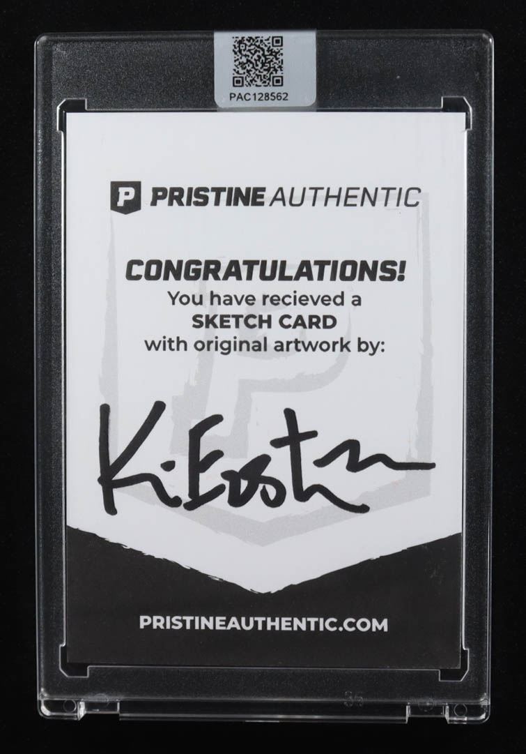 This sketch card includes original art by the co-creator of the Teenage Mutant Ninja Turtles, Kevin Eastman. The card is hand-signed on the back by Eastman.