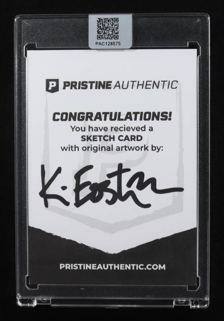 This sketch card includes original art by the co-creator of the Teenage Mutant Ninja Turtles, Kevin Eastman. The card is hand-signed on the back by Eastman.