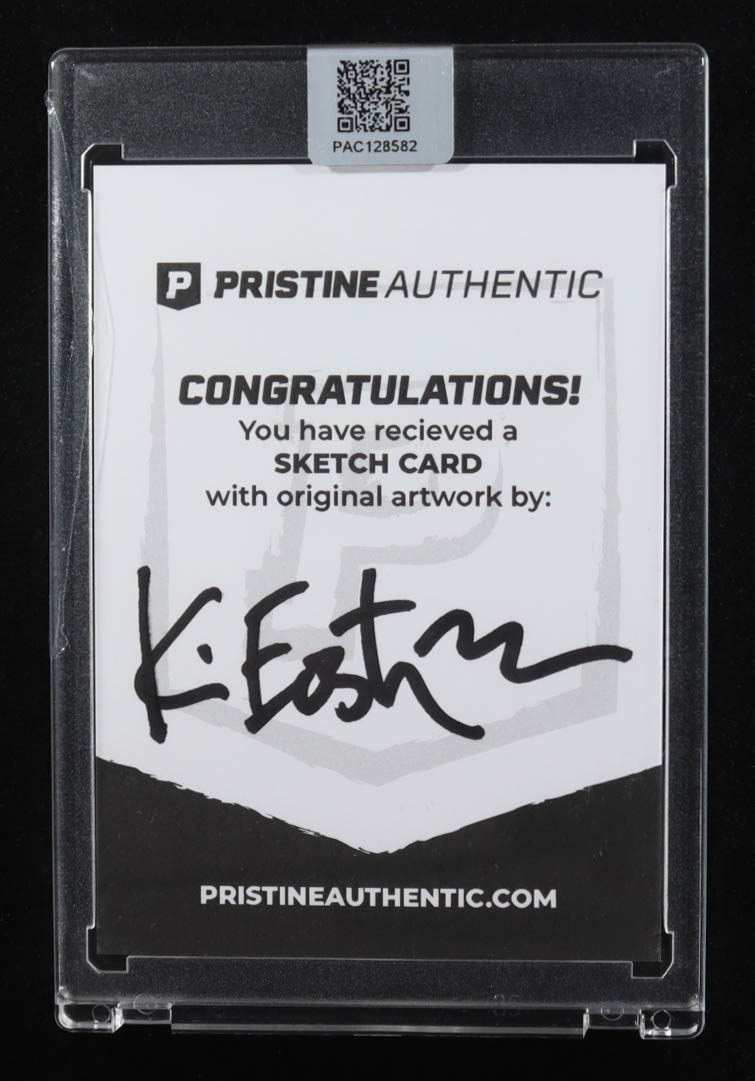 This sketch card includes original art by the co-creator of the Teenage Mutant Ninja Turtles, Kevin Eastman. The card is hand-signed on the back by Eastman.