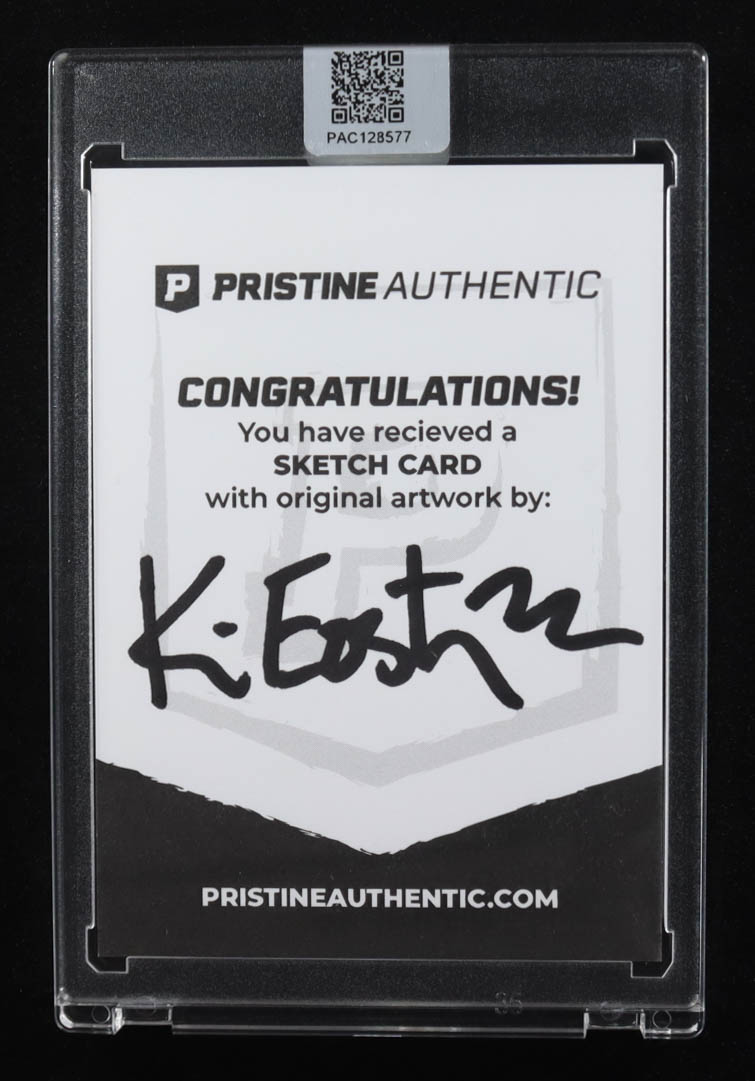 This sketch card includes original art by the co-creator of the Teenage Mutant Ninja Turtles, Kevin Eastman. The card is hand-signed on the back by Eastman.