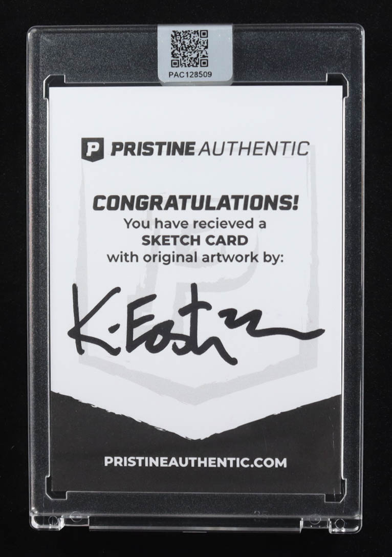 This sketch card includes original art by the co-creator of the Teenage Mutant Ninja Turtles, Kevin Eastman. The card is hand-signed on the back by Eastman.