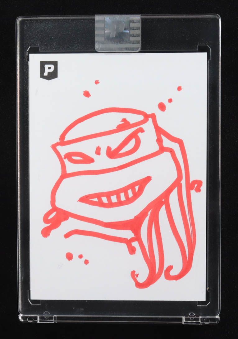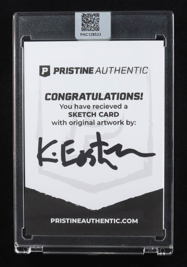This sketch card includes original art by the co-creator of the Teenage Mutant Ninja Turtles, Kevin Eastman. The card is hand-signed on the back by Eastman.