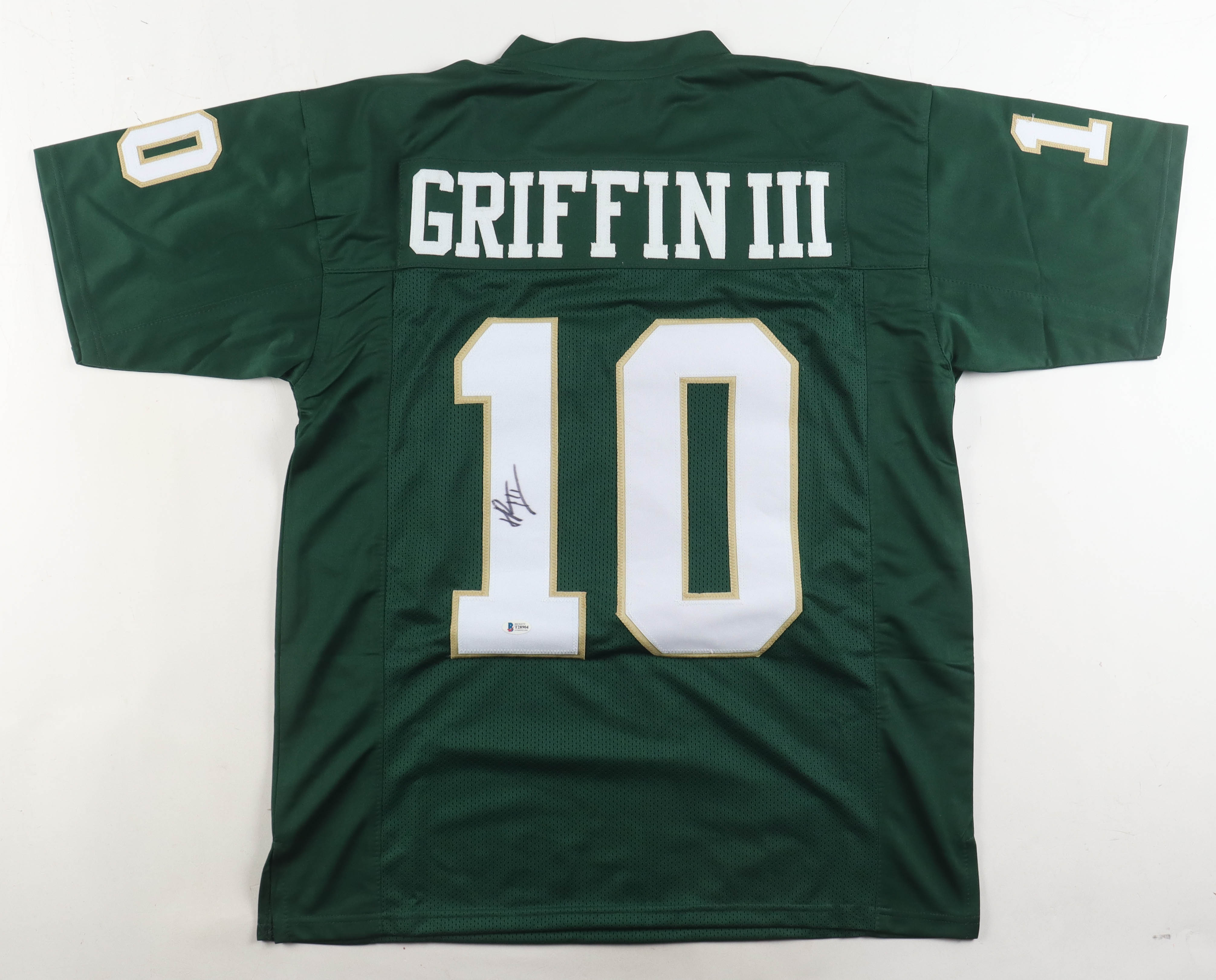 Custom jersey with everything sewn on, size XL. Hand-signed by Robert Griffin III