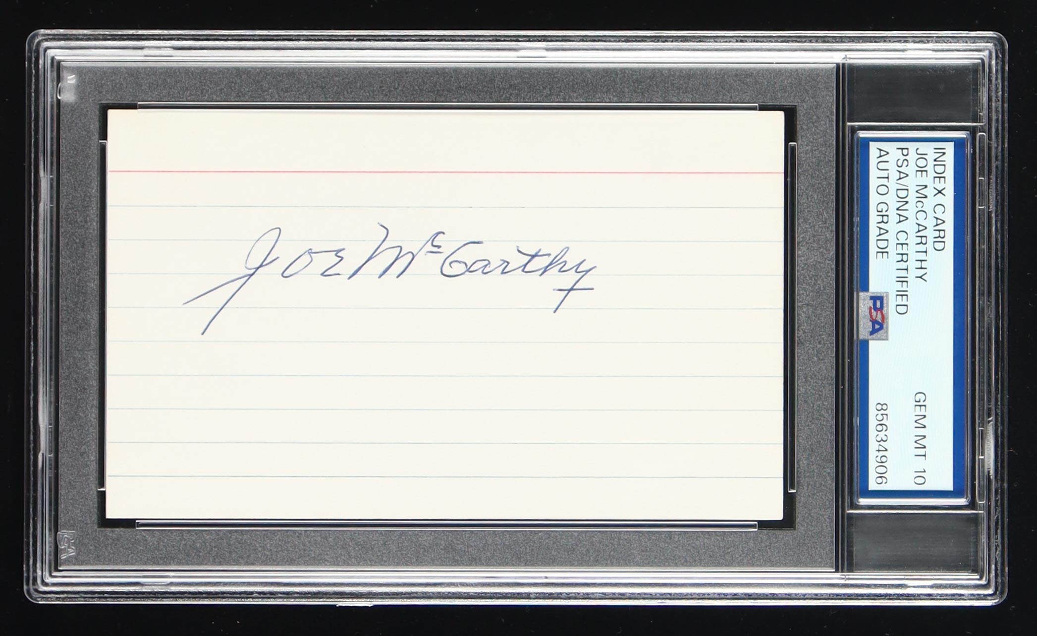Index card has been hand-signed by Joe McCarthy (D. 1978, New York Yankees, HOF) and graded (PSA 10). Please see photos for details regarding the item.