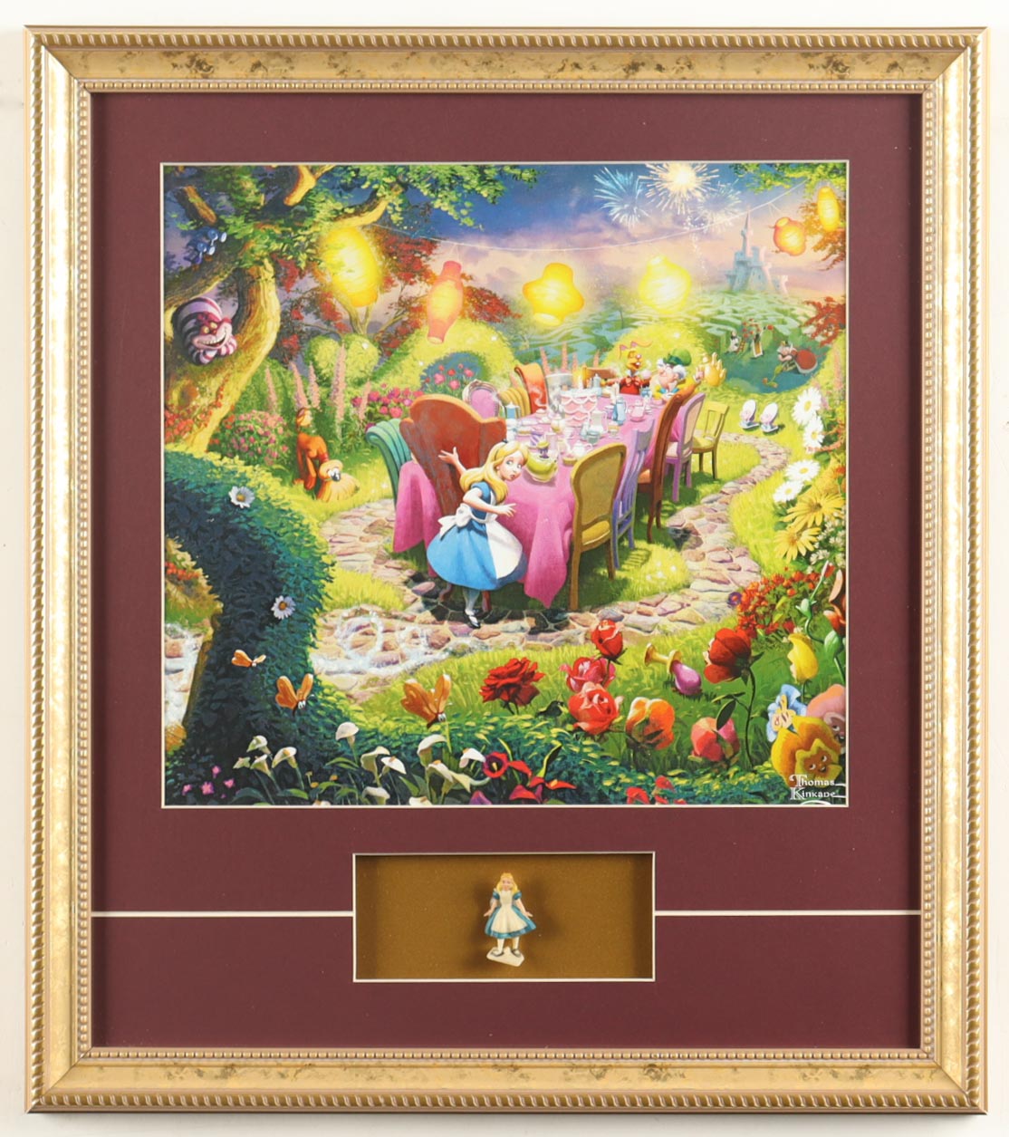 Thomas Kinkade Walt Disney's "Alice in Wonderland" Custom Framed Print Display with Vintage 1960 Alice Figurine