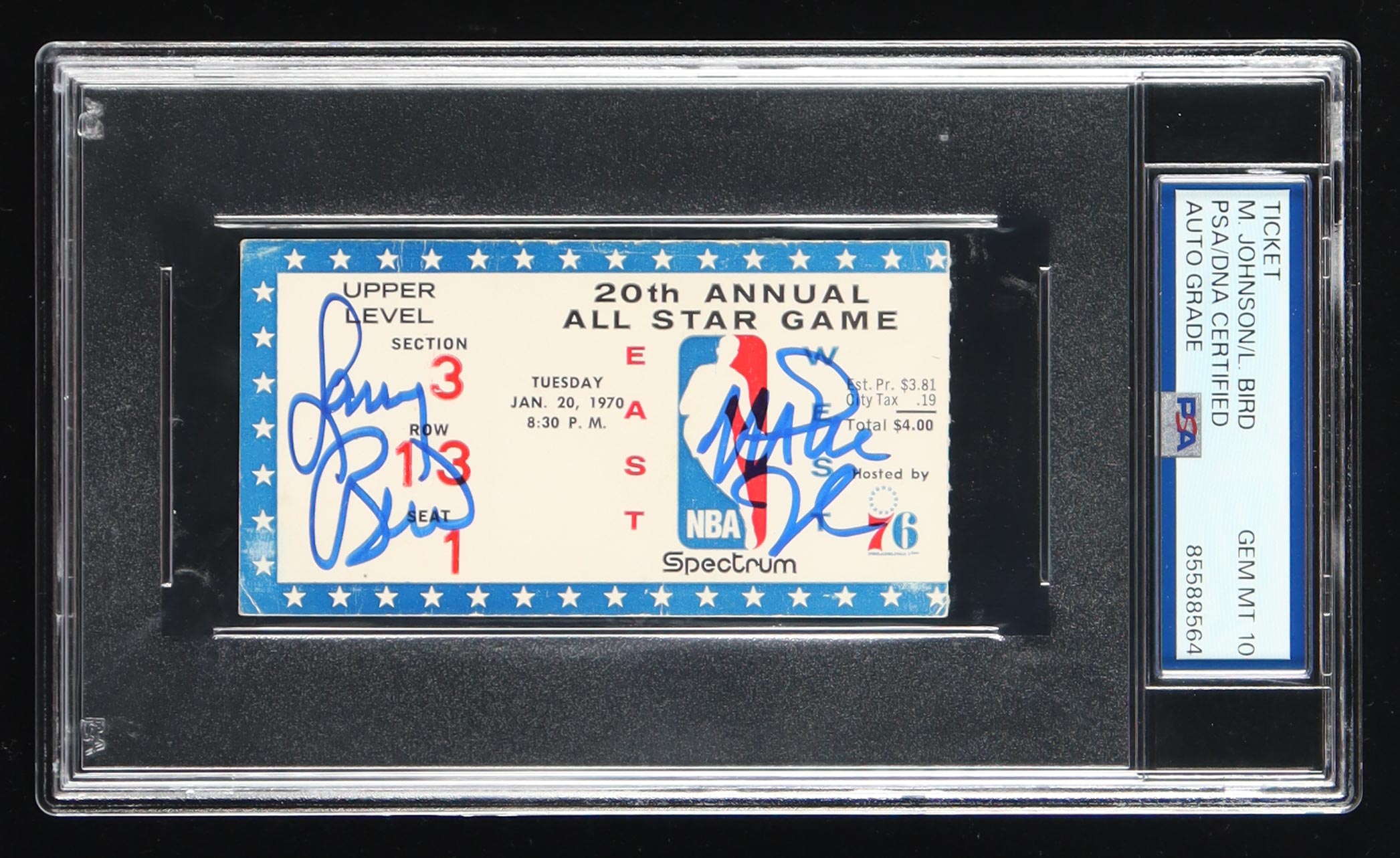 Magic Johnson & Larry Bird Signed 20th Annual All-Star Game Ticket (PSA 10)