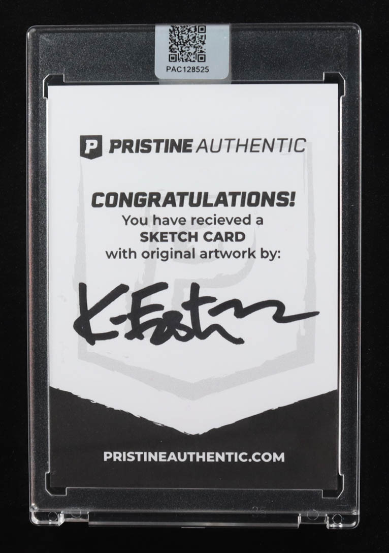 This sketch card includes original art by the co-creator of the Teenage Mutant Ninja Turtles, Kevin Eastman. The card is hand-signed on the back by Eastman.