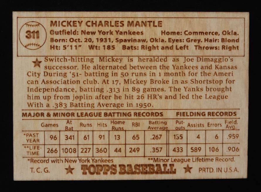 Mickey Mantle 1952 Topps Wood Art #311 RC
