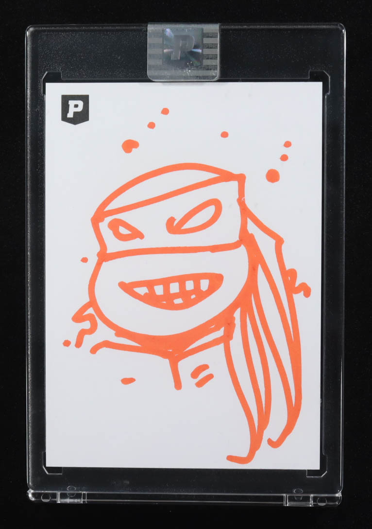 This sketch card includes original art by the co-creator of the Teenage Mutant Ninja Turtles, Kevin Eastman. The card is hand-signed on the back by Eastman.
