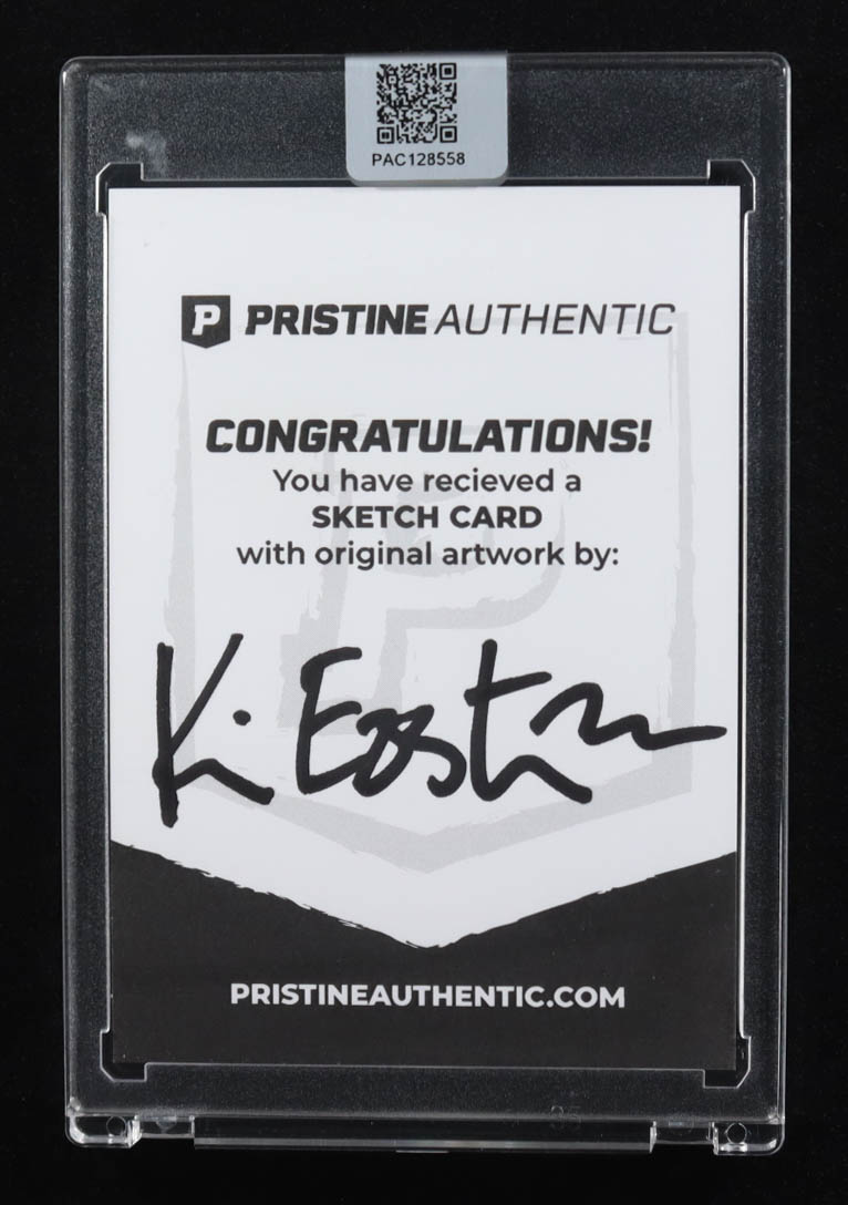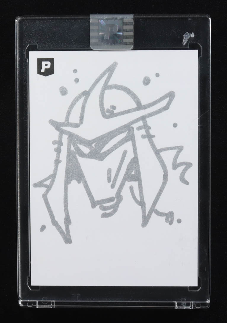This sketch card includes original art by the co-creator of the Teenage Mutant Ninja Turtles, Kevin Eastman. The card is hand-signed on the back by Eastman.