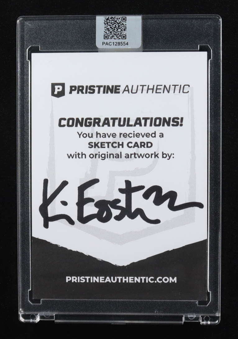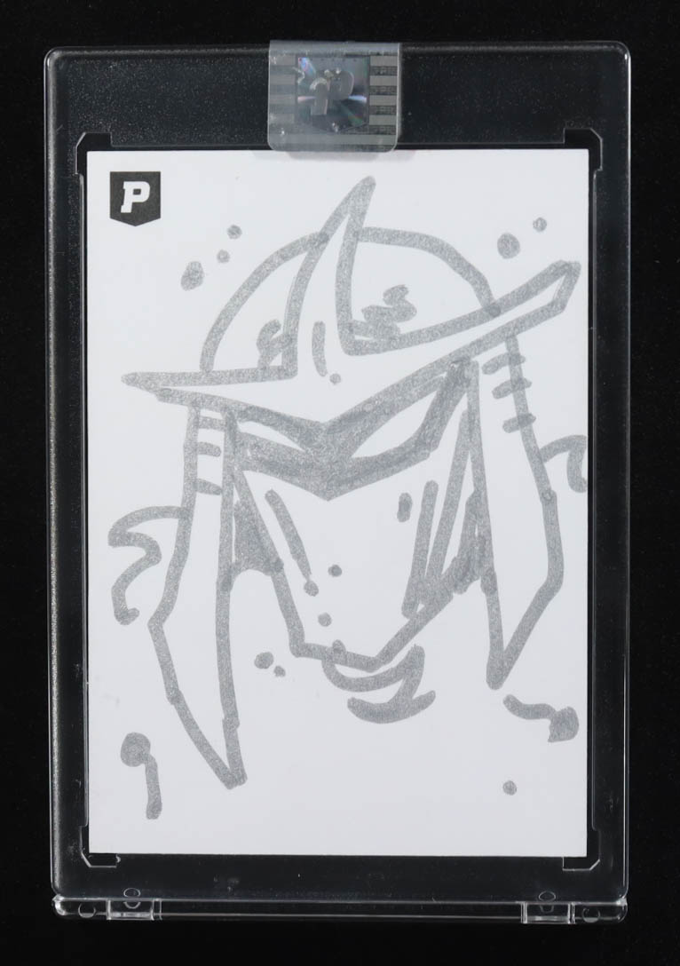 This sketch card includes original art by the co-creator of the Teenage Mutant Ninja Turtles, Kevin Eastman. The card is hand-signed on the back by Eastman.