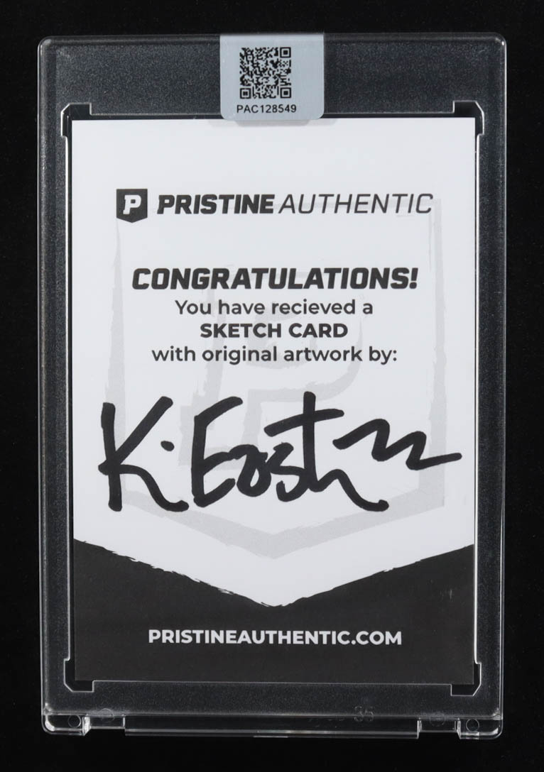 This sketch card includes original art by the co-creator of the Teenage Mutant Ninja Turtles, Kevin Eastman. The card is hand-signed on the back by Eastman.