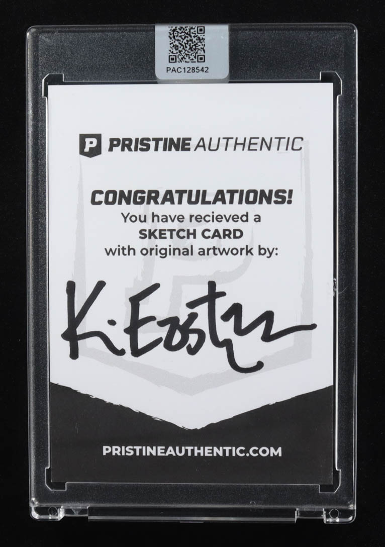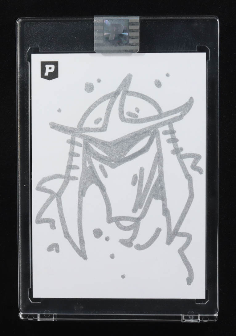 This sketch card includes original art by the co-creator of the Teenage Mutant Ninja Turtles, Kevin Eastman. The card is hand-signed on the back by Eastman.