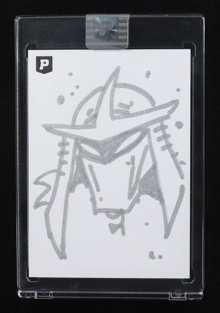 This sketch card includes original art by the co-creator of the Teenage Mutant Ninja Turtles, Kevin Eastman. The card is hand-signed on the back by Eastman.