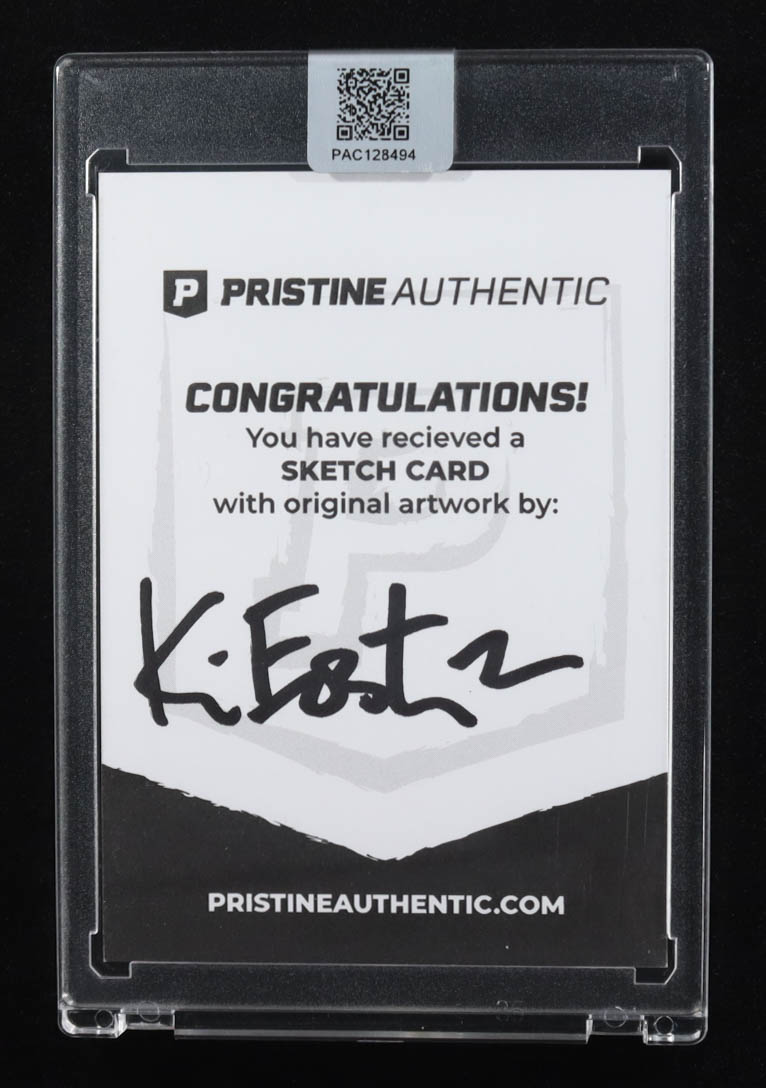 This sketch card includes original art by the co-creator of the Teenage Mutant Ninja Turtles, Kevin Eastman. The card is hand-signed on the back by Eastman.
