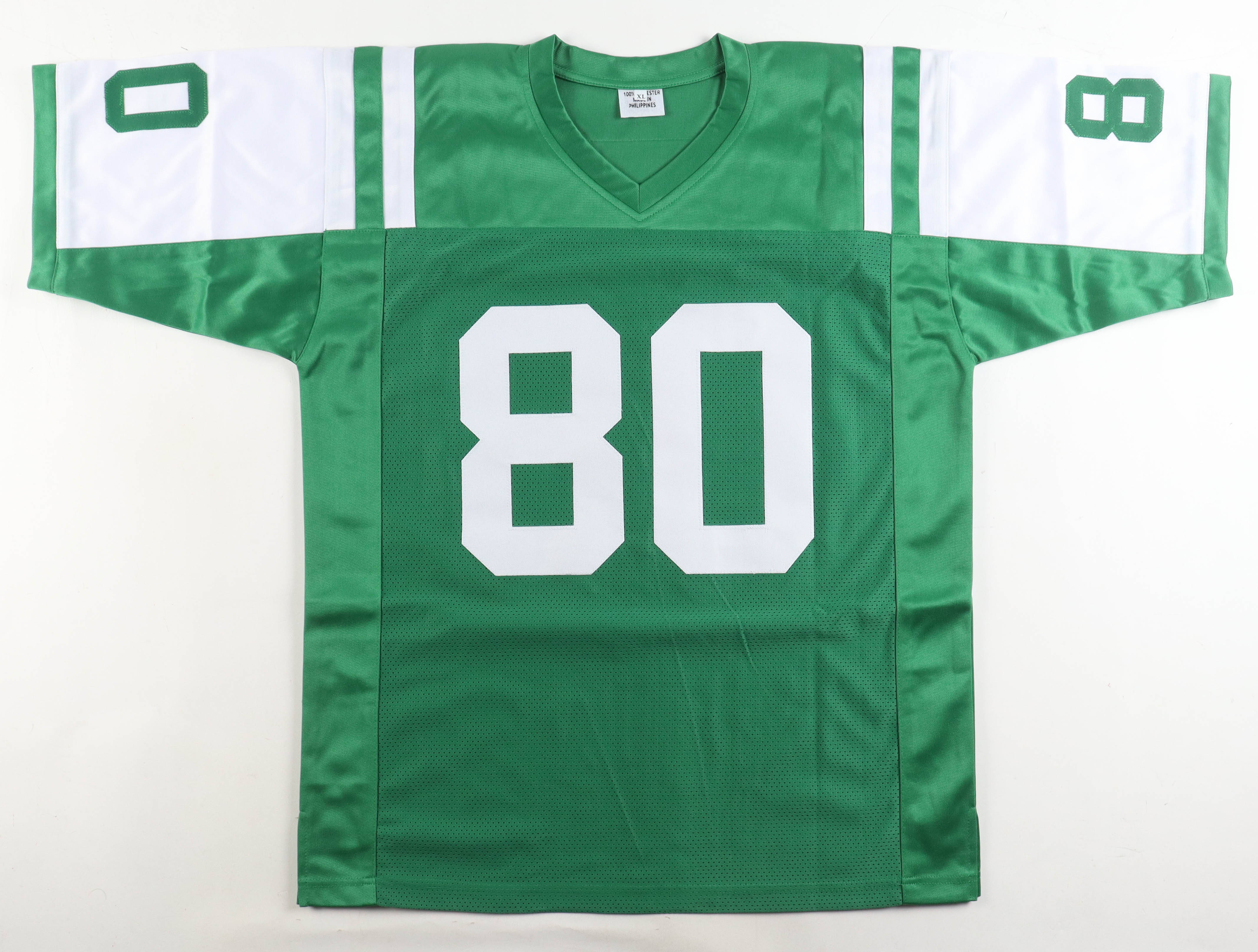 Custom jersey with everything sewn on, size XL. Hand-signed by Wayne Chrebet.