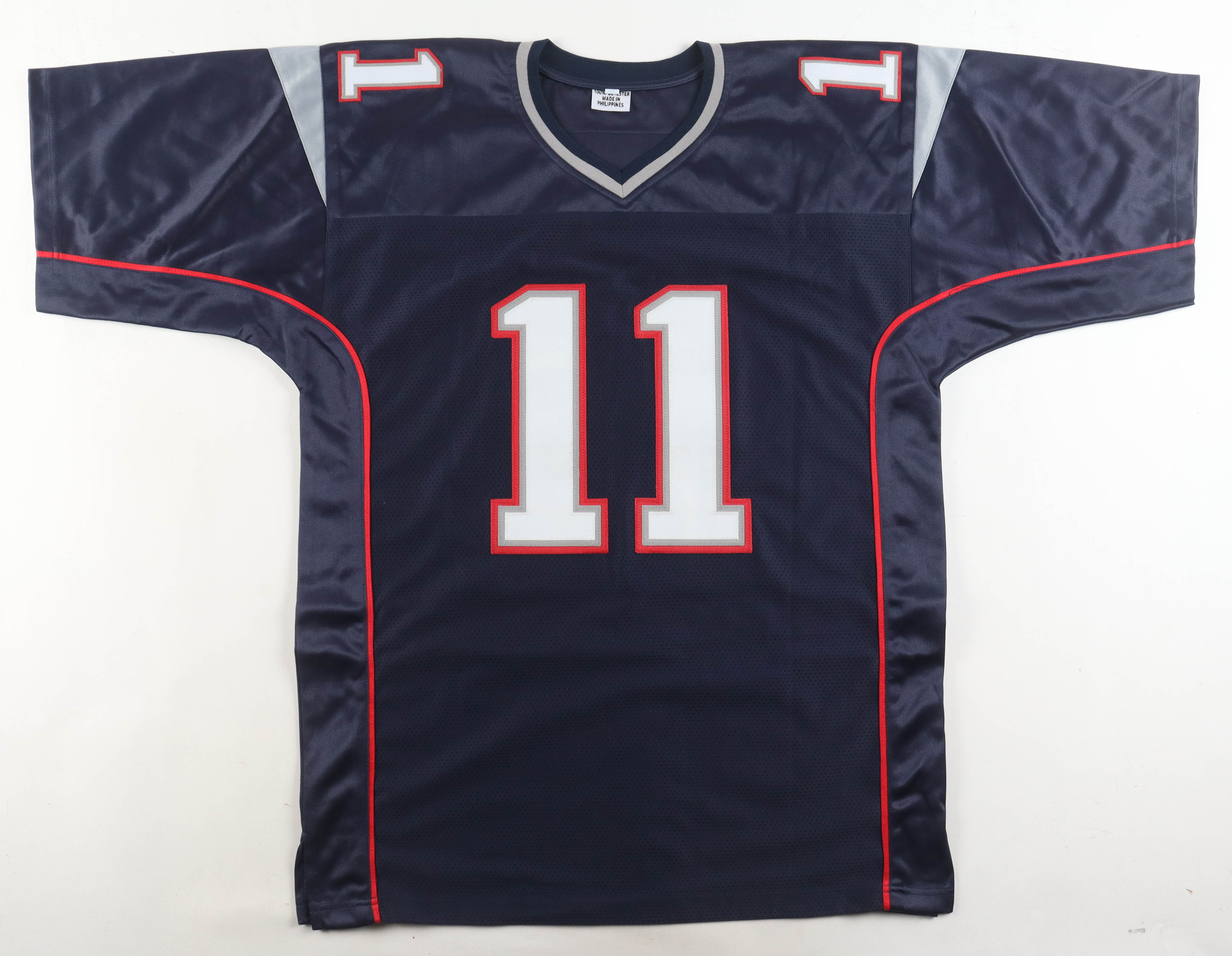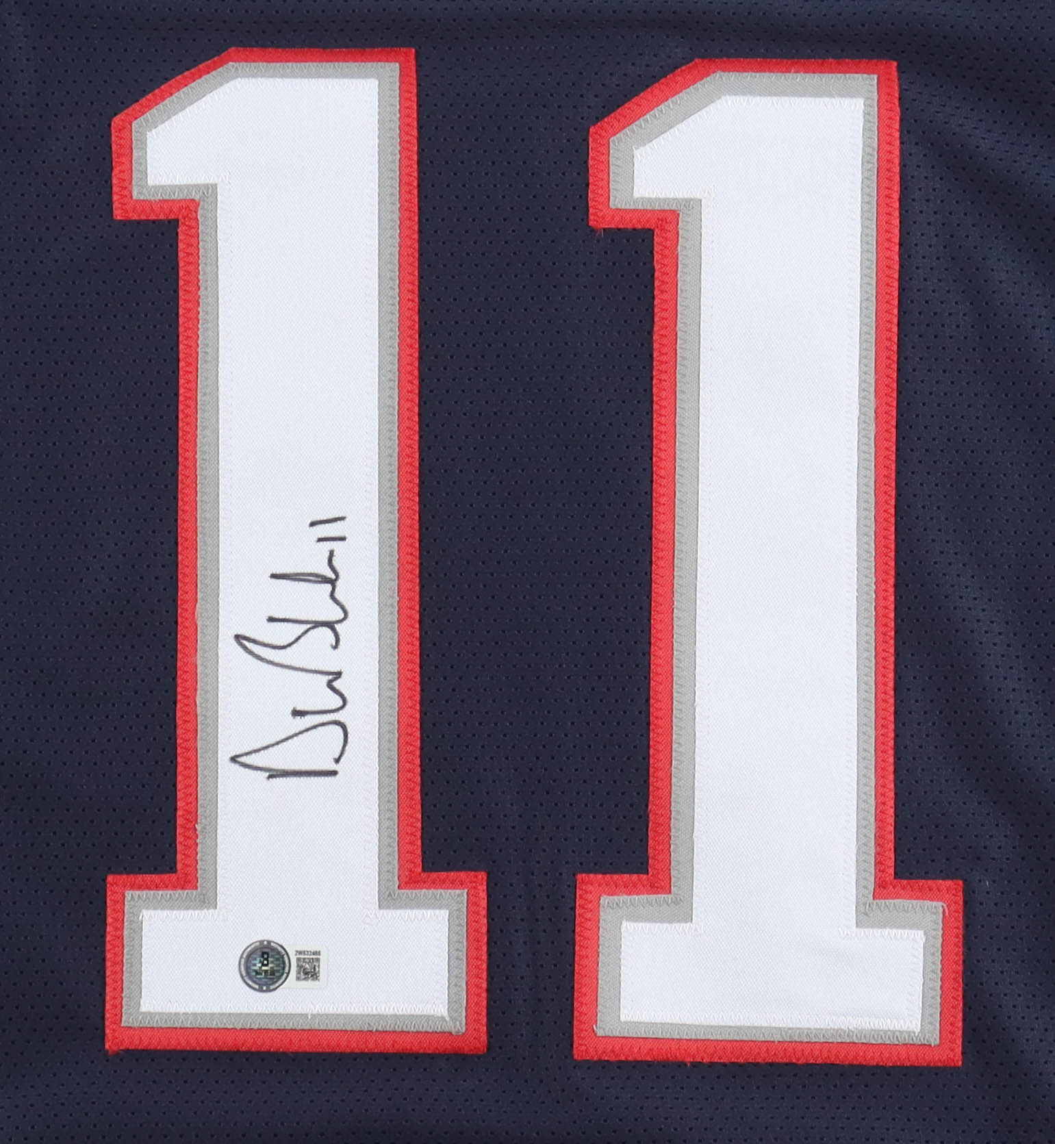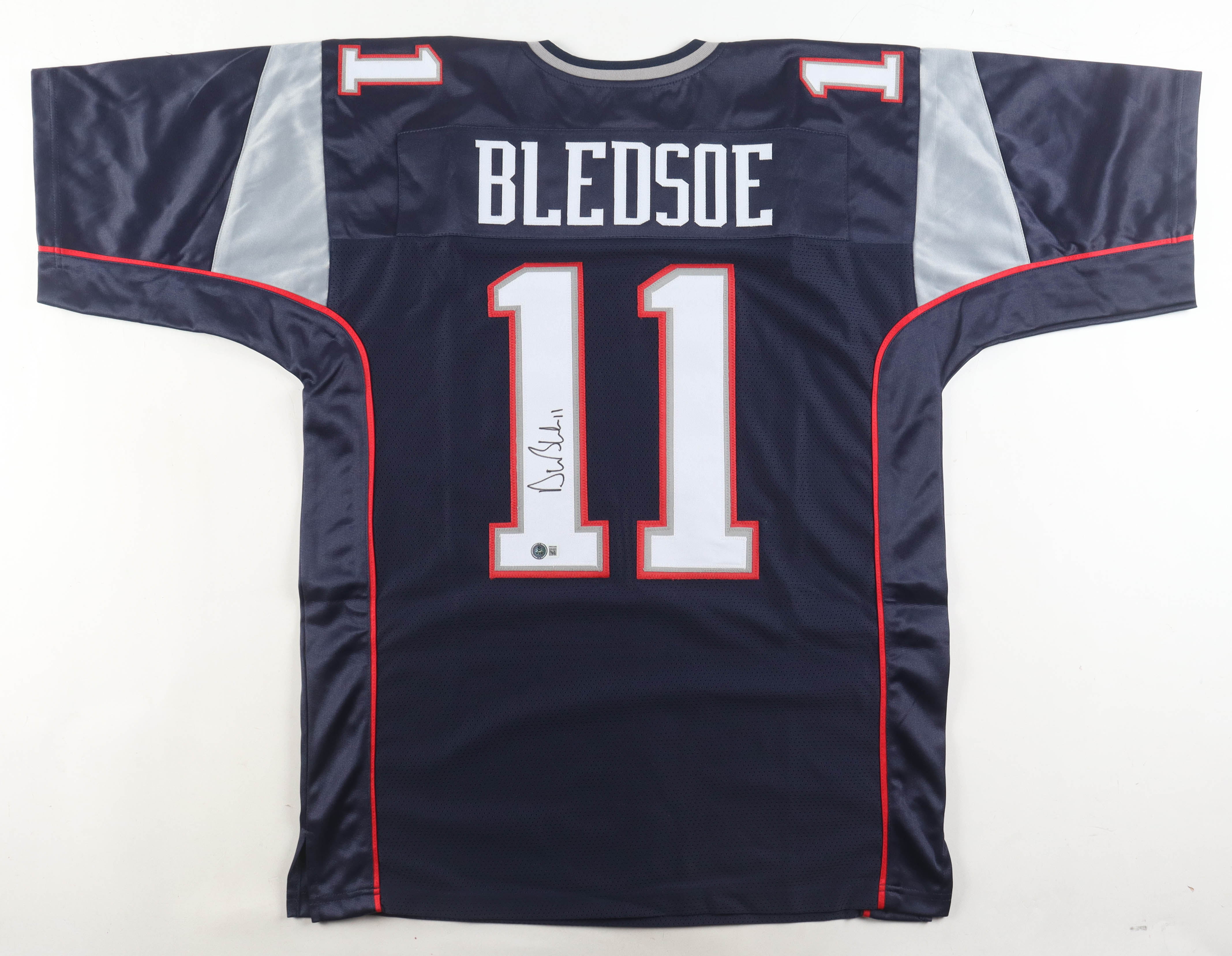 Custom jersey with everything sewn on, size XL. Hand-signed by Drew Bledsoe.