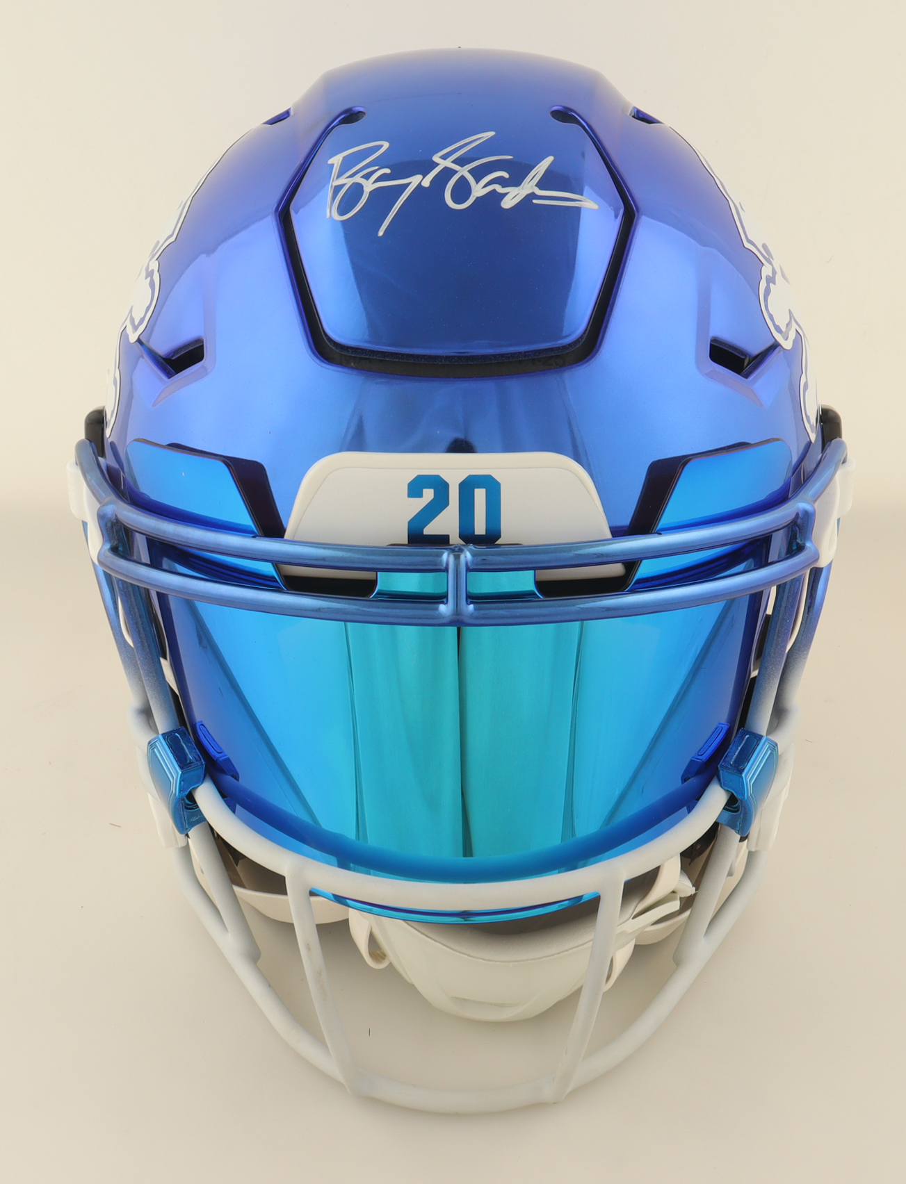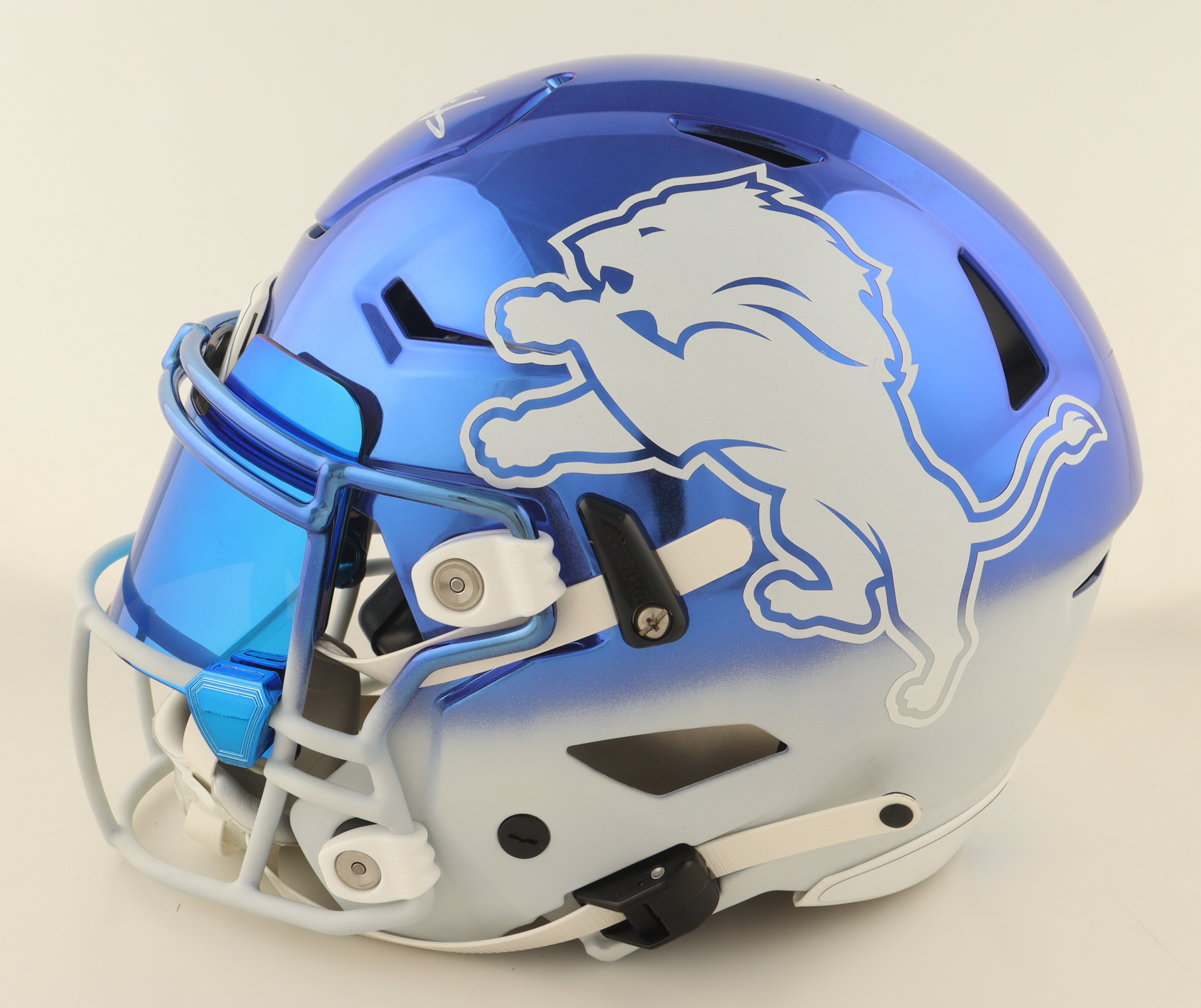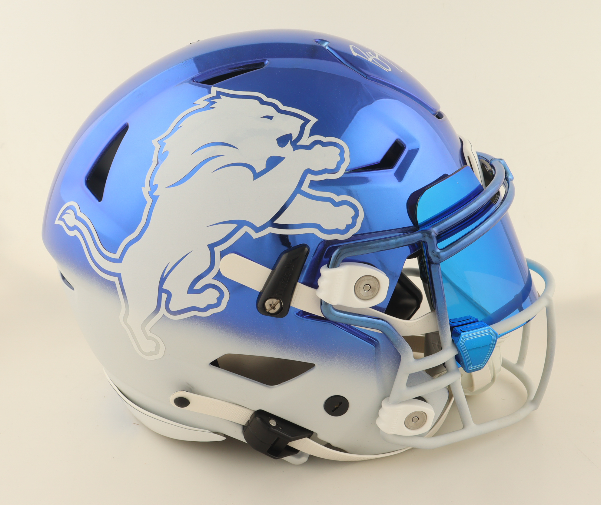 Riddell Detroit Lions Authentic On-field full-size SpeedFlex football helmet with visor and custom design. Hand-signed by Barry Sanders (HOF).
