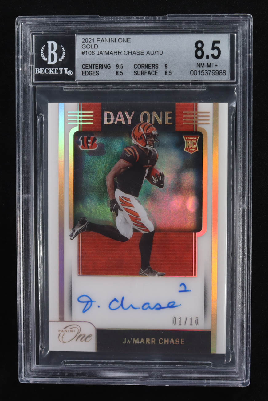 Ja'Marr Chase 2021 Panini One #106 AU RC #1/10 (BGS 8.5 | Auto Grade 10)