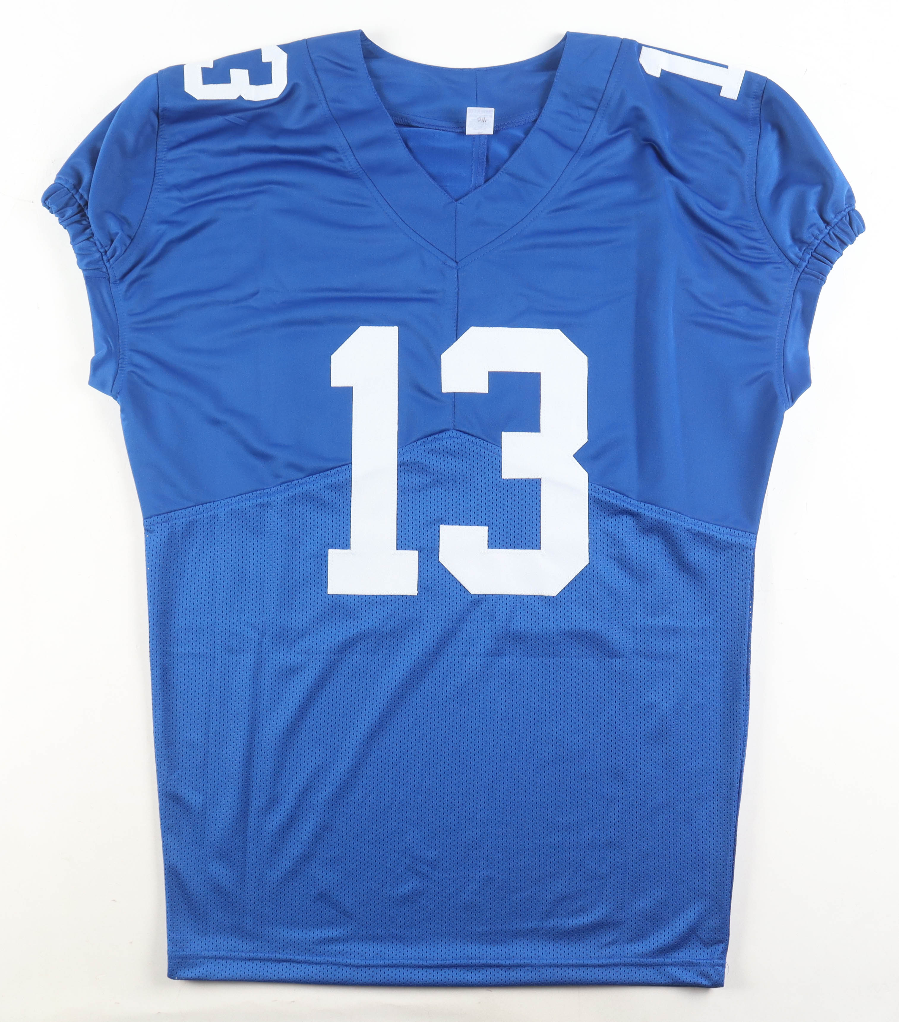 Custom jersey with everything sewn own, size XL. Hand-signed and inscribed by Odell Beckham Jr..