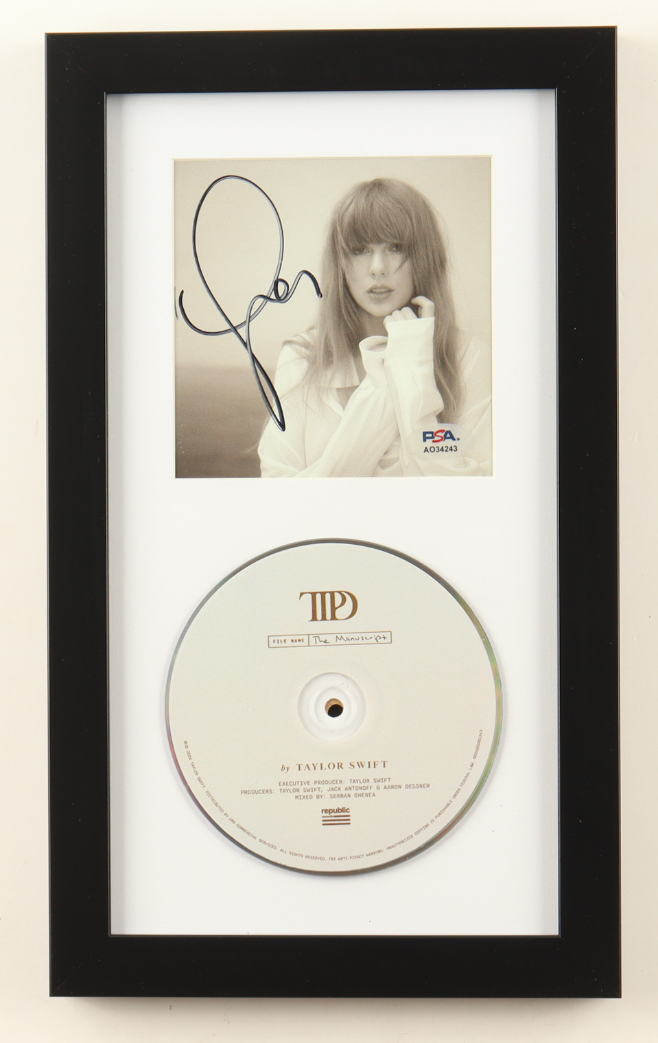 Custom frame measures approximately 8" x 13.5" in size. Features a "The Torture Poets Department" CD insert that has been hand-signed by Taylor Swift and includes the disc as shown.
