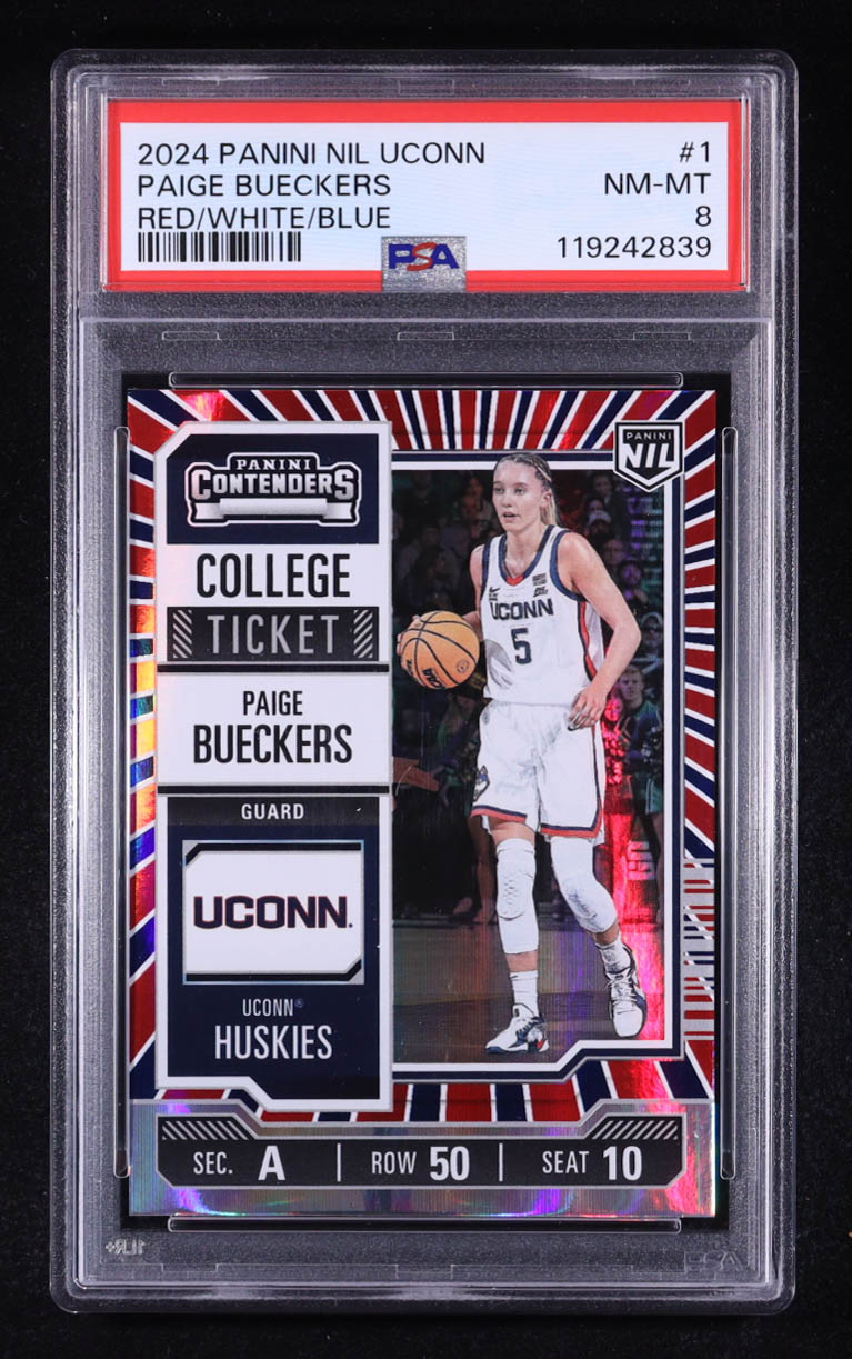 Paige Bueckers 2024-25 University of Connecticut Panini College Contenders Red White and Blue #1 (PSA 8)