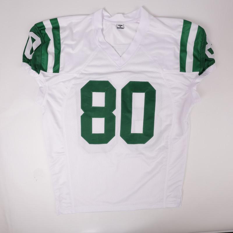 Custom jersey with everything sewn on, size XL. Hand-signed by Wayne Chrebet.