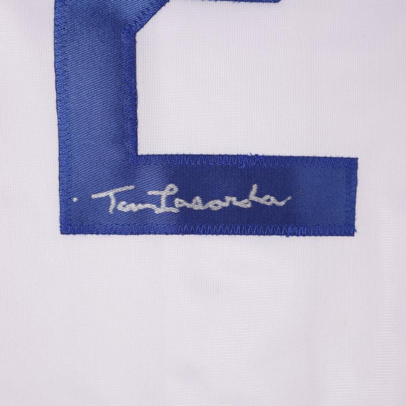 Custom jersey with everything sewn on, size XL. Hand-signed by Tommy Lasorda.