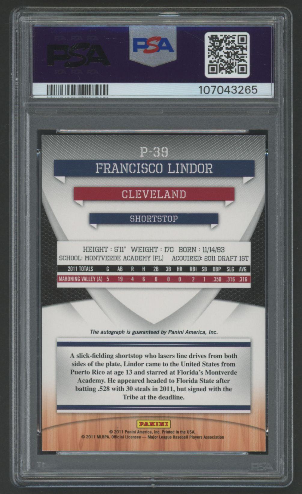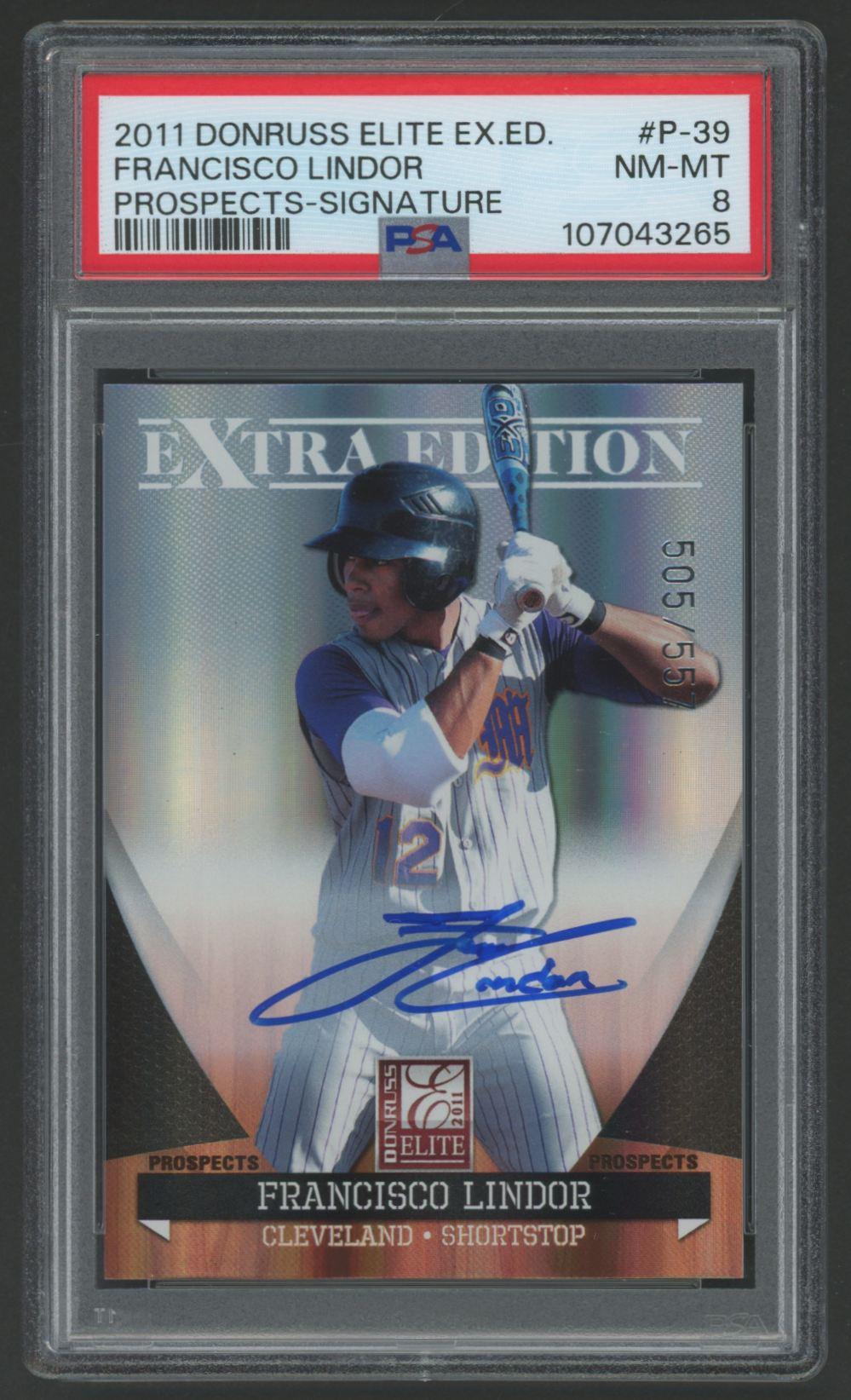 Francisco Lindor 2011 Donruss Elite Extra Edition Prospects AU #P39 #505/557 (PSA 8)