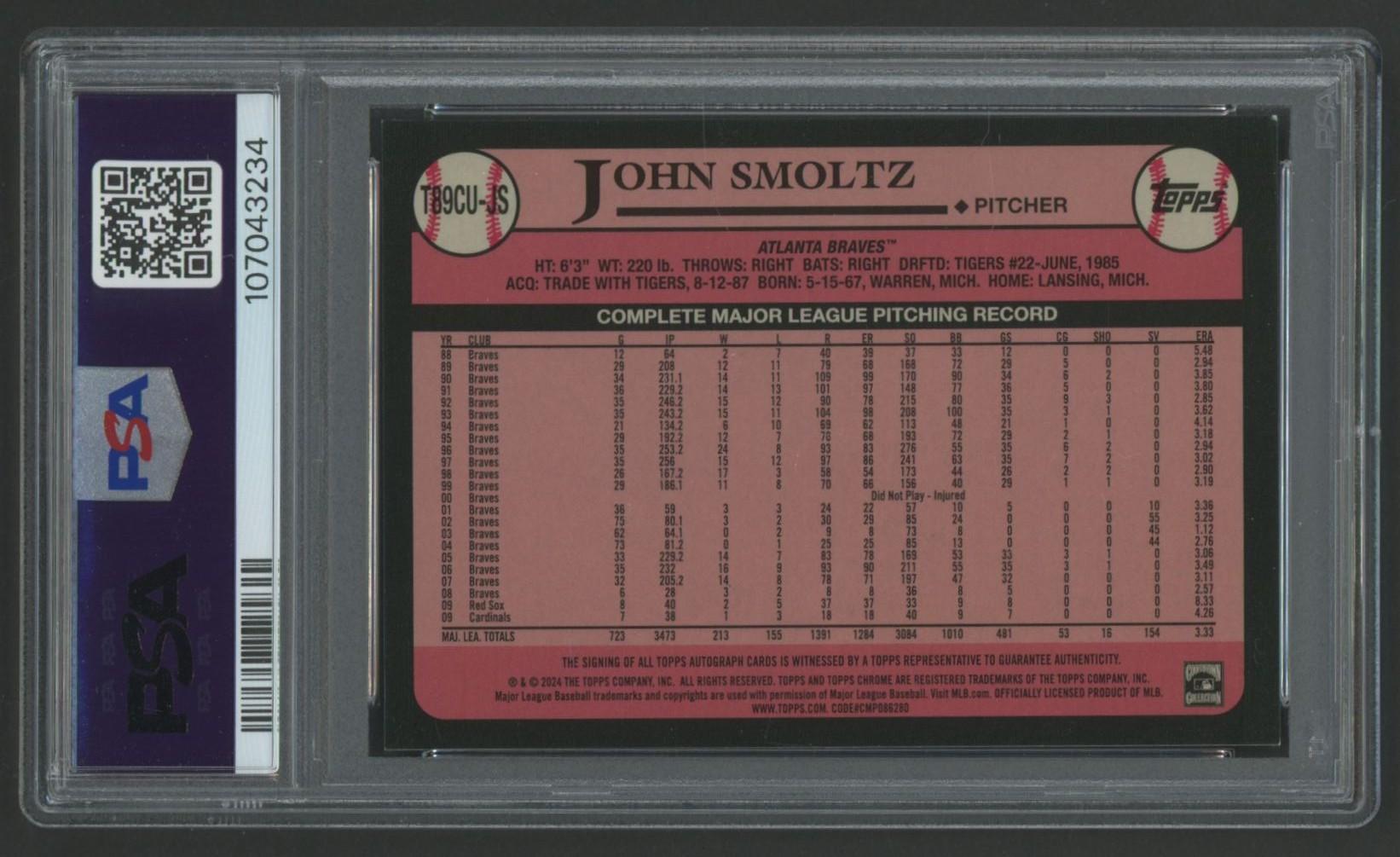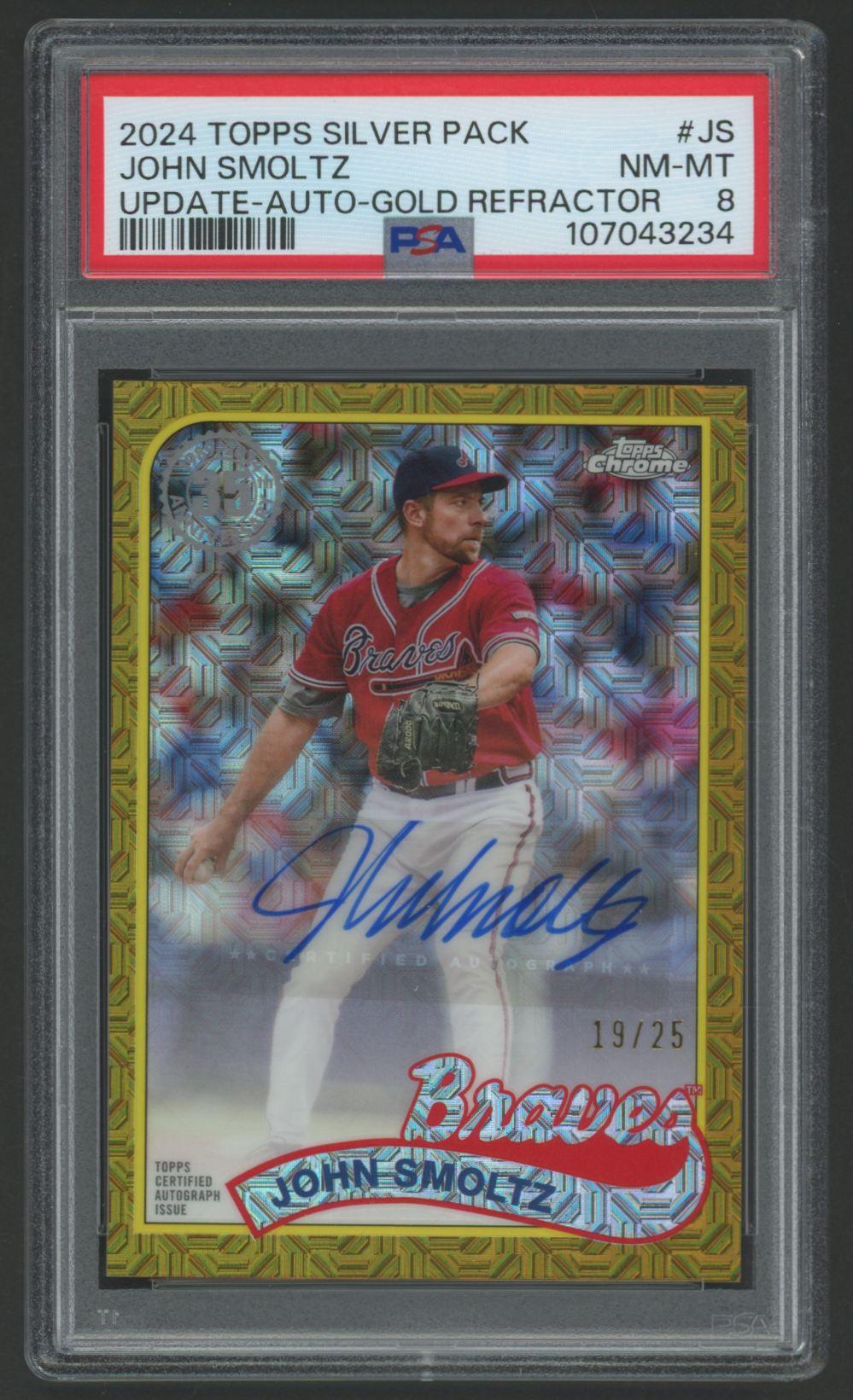 John Smoltz 2024 Topps Silver Pack Update Autographs Gold Refractor #T89CUJS #19/25 (PSA 8)