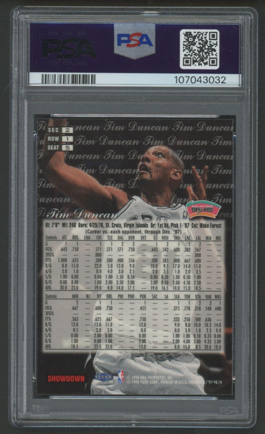 Tim Duncan 1997-98 Flair Showcase Row 1 #5 RC (PSA 9)