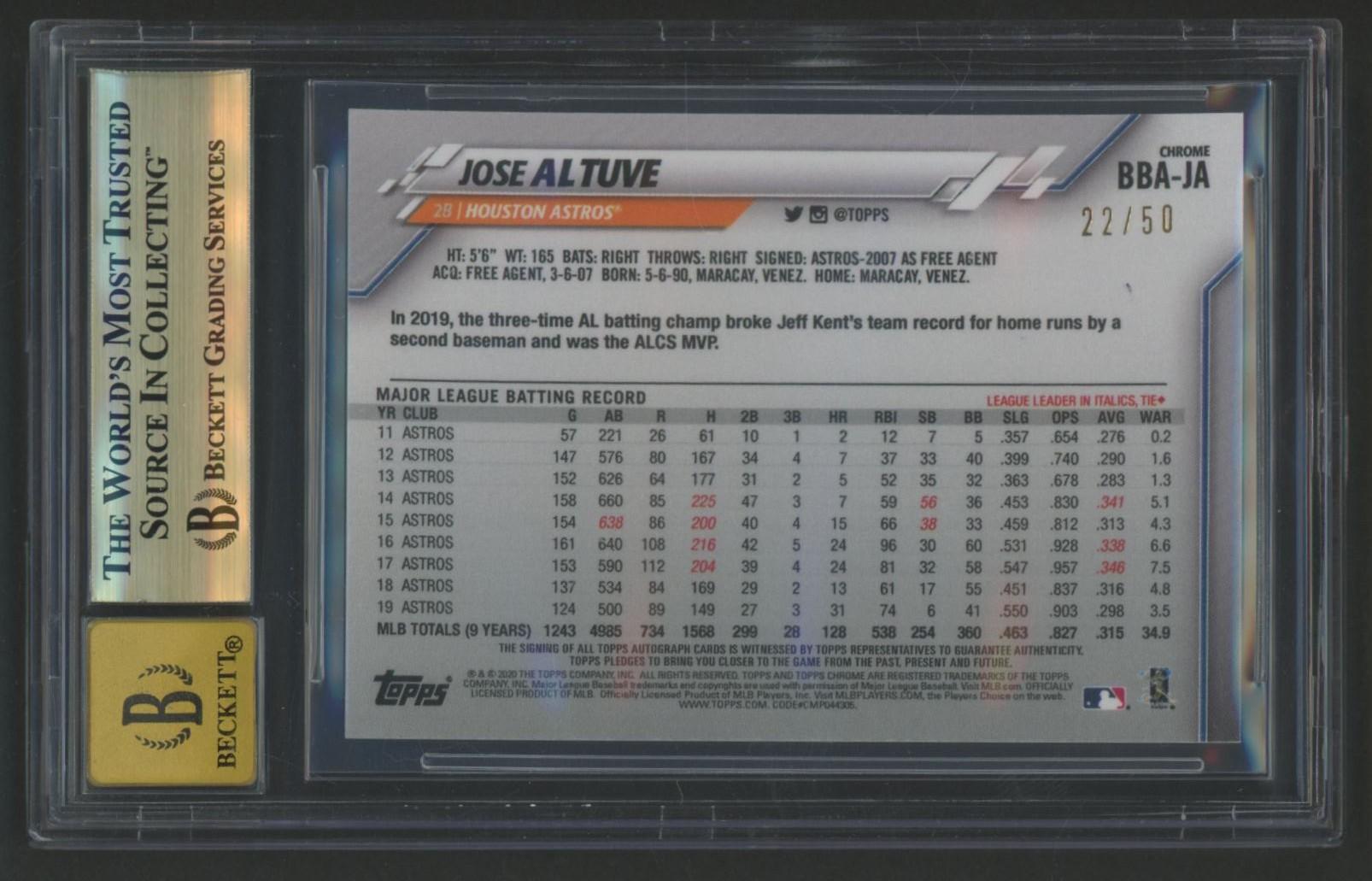Jose Altuve 2020 Topps Chrome Ben Baller Autographs Gold Refractors #BBAJA #22/50 (BGS 9.5 | Auto 10)