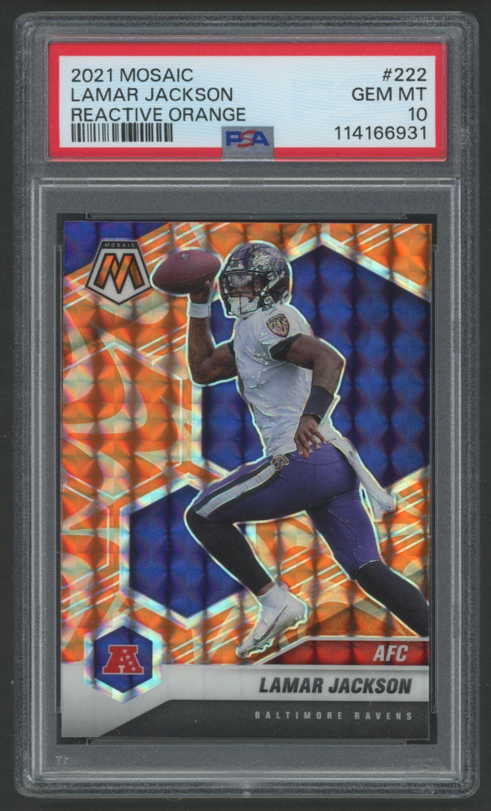 Lamar Jackson 2021 Mosaic Mosaic Reactive Orange #222 (PSA 10)
