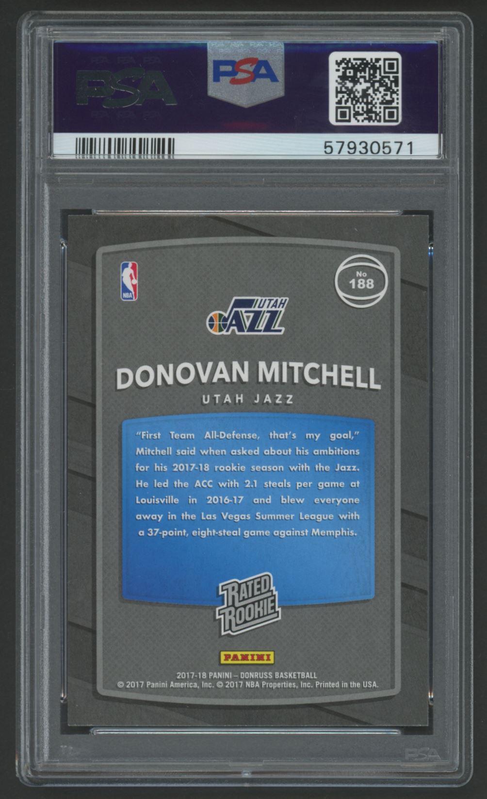Donovan Mitchell 2017 Donruss RR #188 RC (PSA 10)
