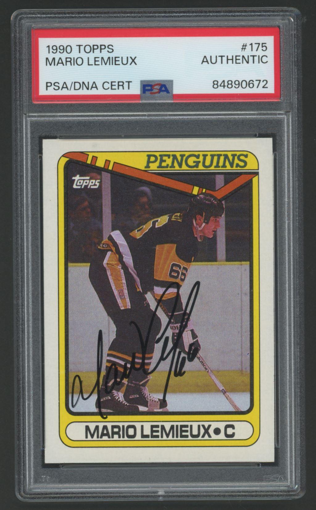 Mario Lemieux Signed 1990-91 Topps #175 (PSA)