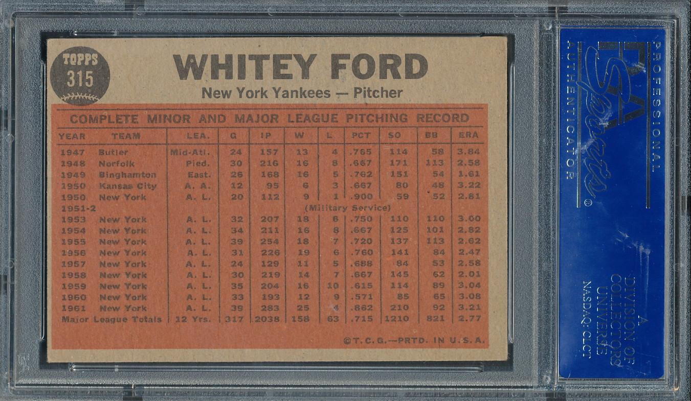 Whitey Ford Signed 1962 Topps #315 IA (PSA)