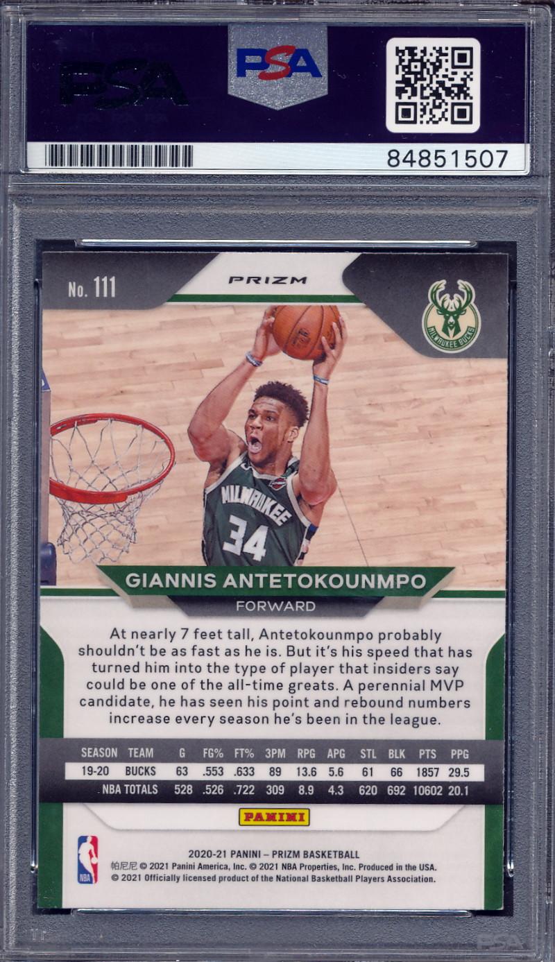 Giannis Antetokounmpo Signed 2020-21 Panini Prizm Prizms Green #111 (PSA | Autograph Graded 9)