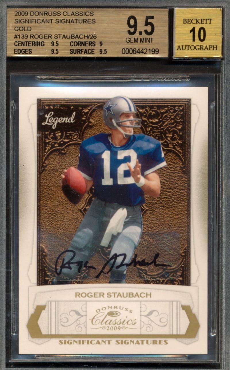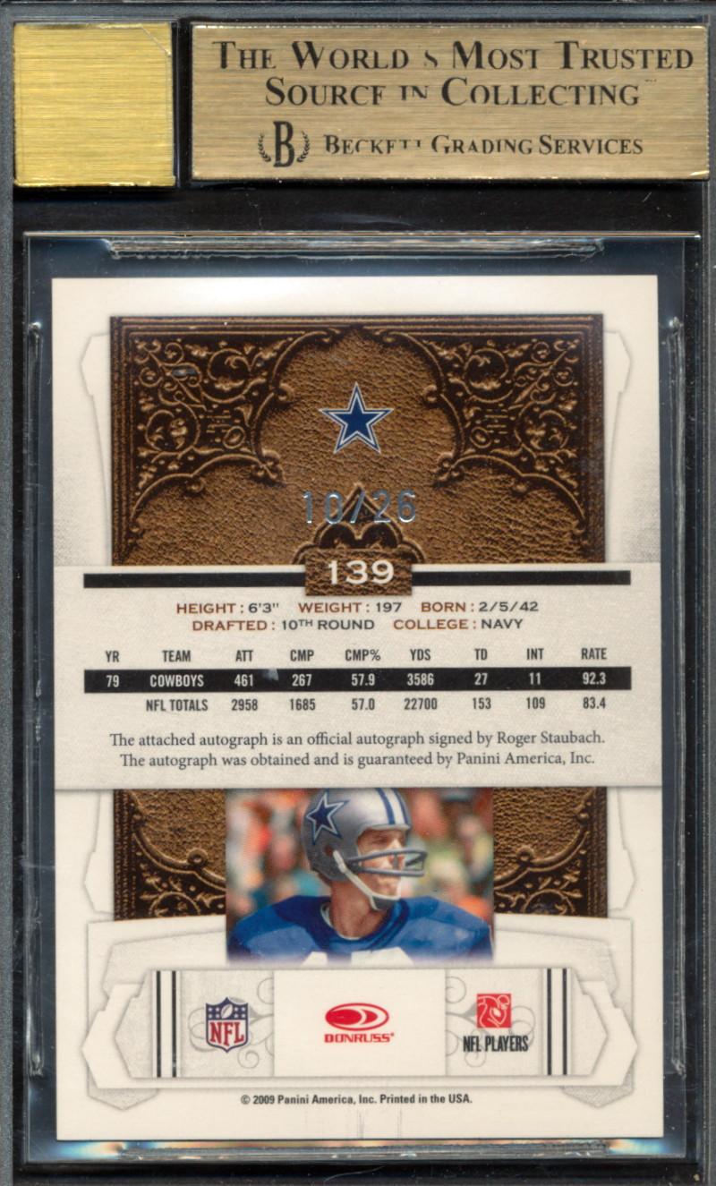 Roger Staubach 2009 Donruss Classics Significant Signatures Gold #139 #/26 (BGS 9.5 | Autograph Graded 10)