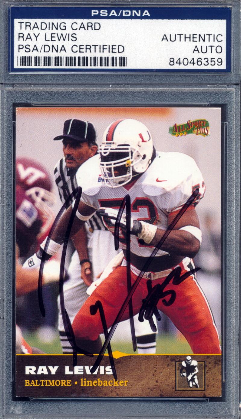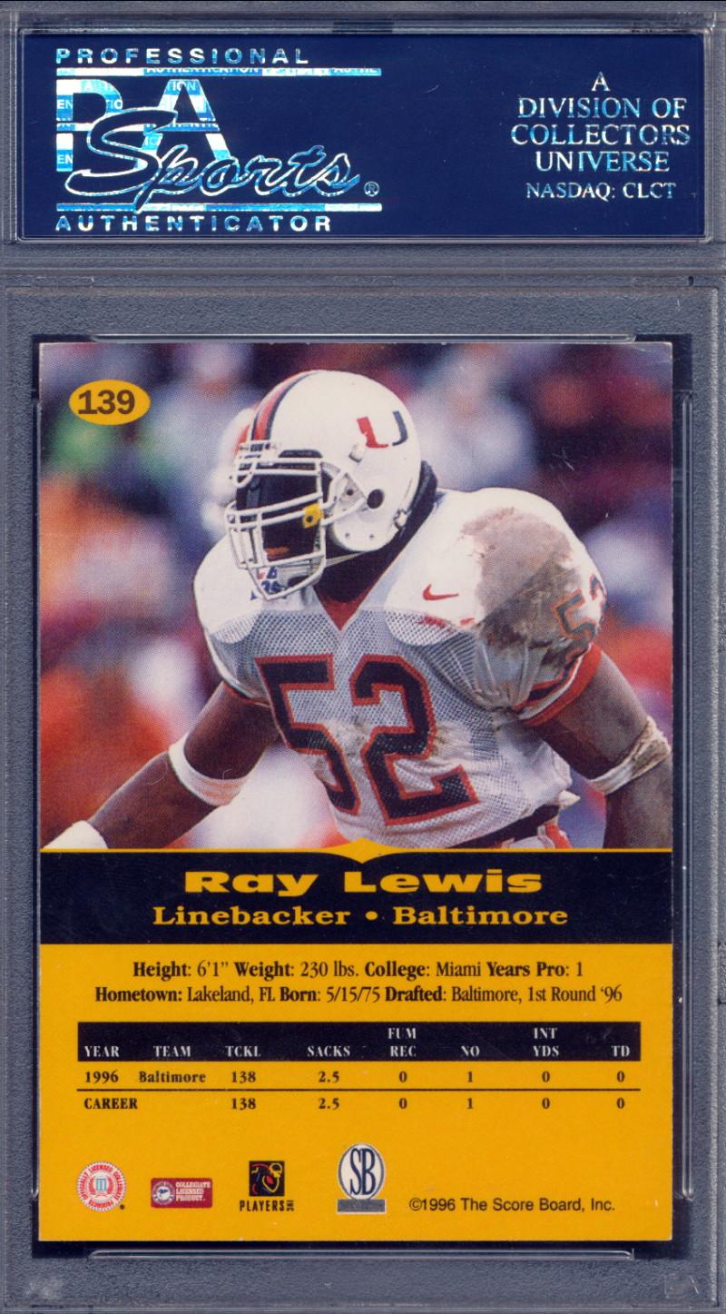 Ray Lewis Signed 1996-97 Score Board All Sport PPF #139 (PSA)