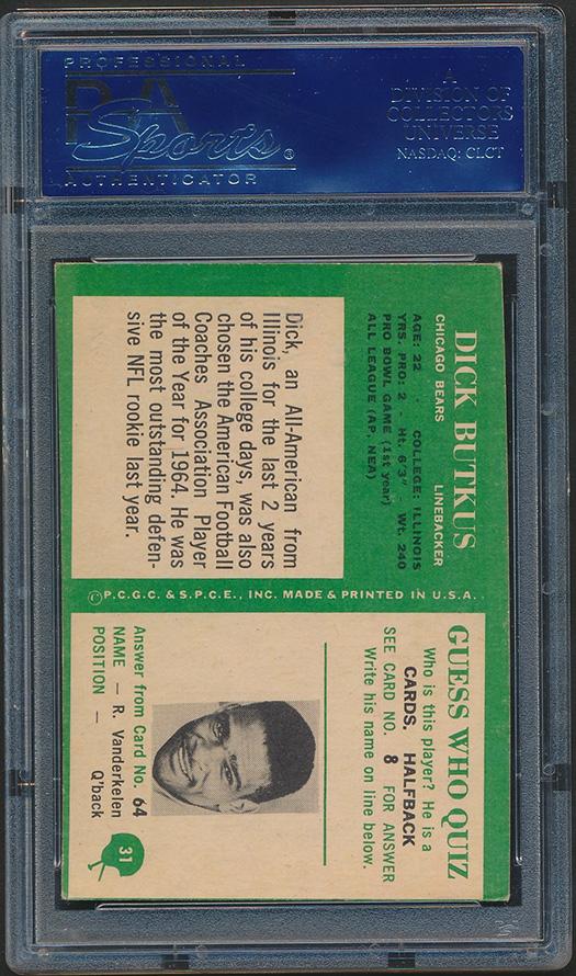 Dick Butkus Signed 1966 Philadelphia #31 RC (PSA)