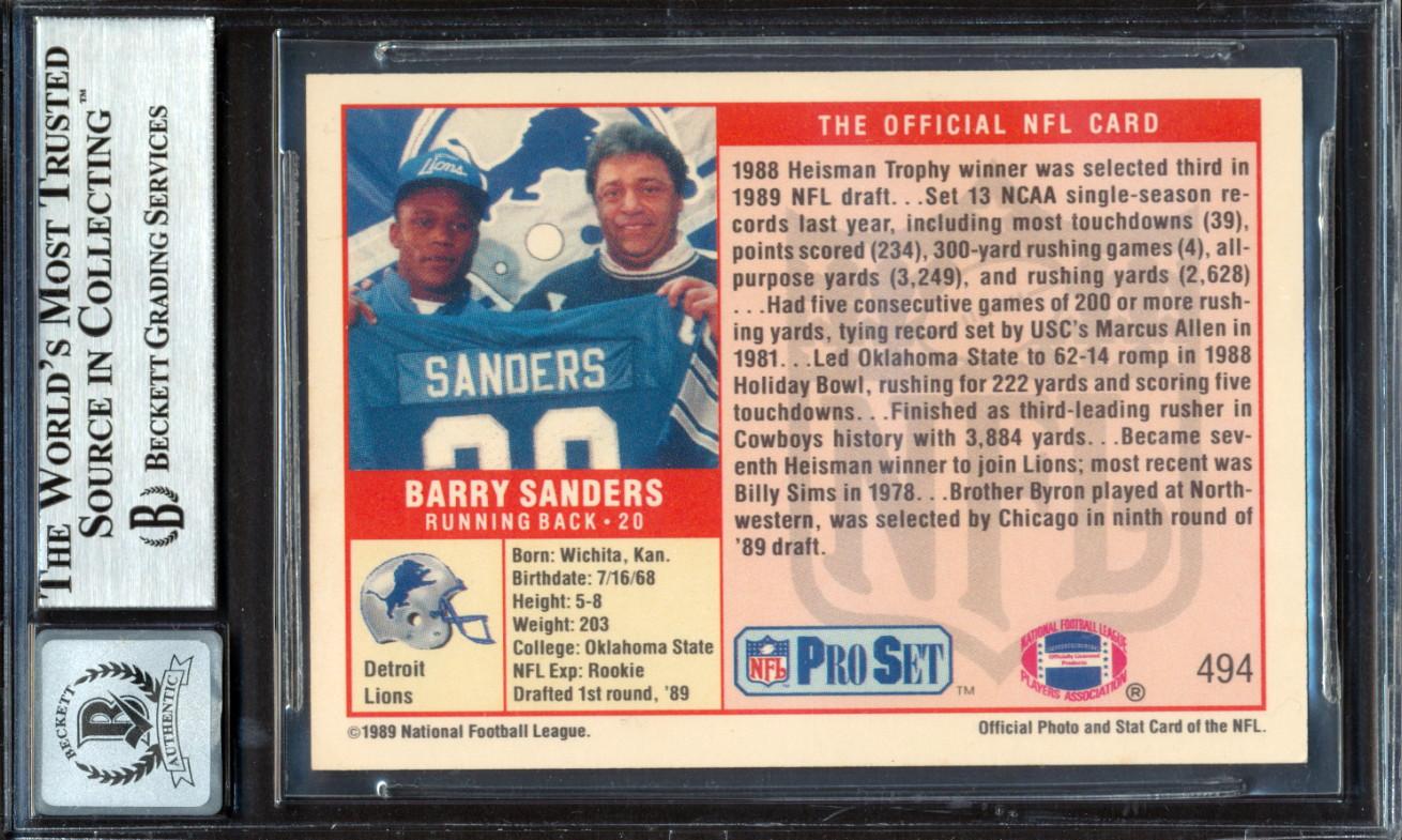 Barry Sanders Signed 1989 Pro Set #494 RC (BGS | Autograph Graded 10)