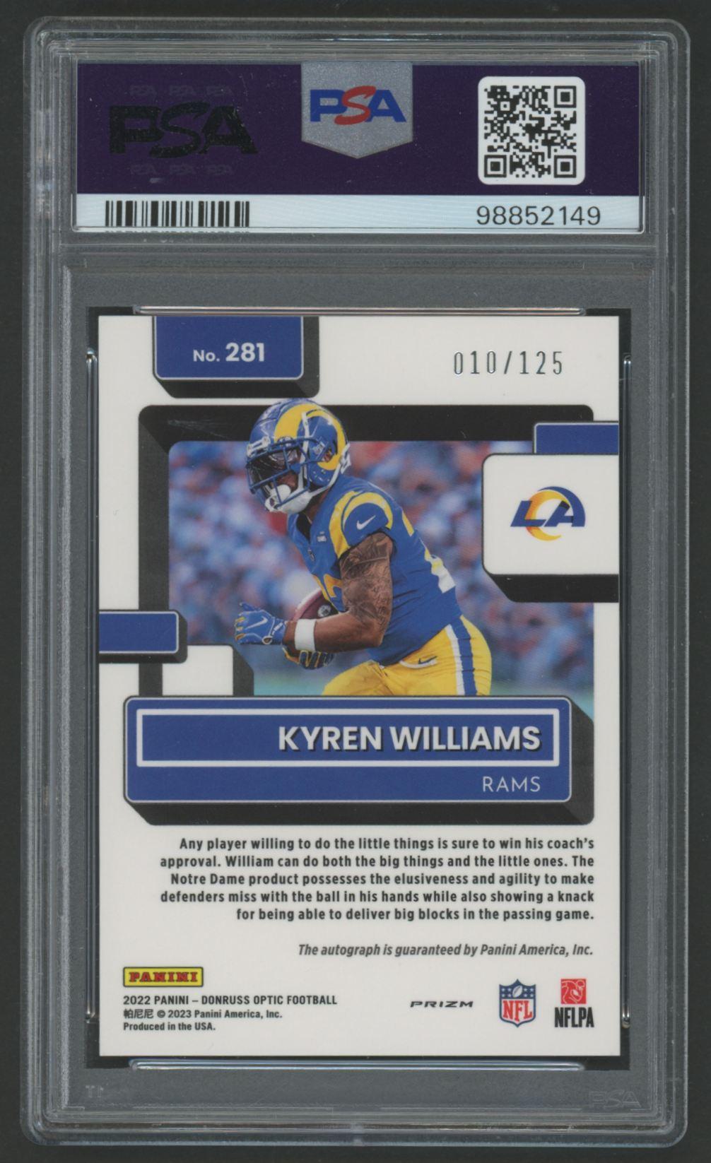 Kyren Williams 2022 Donruss Optic Autograph Holo #281 #10/125 (PSA 9)