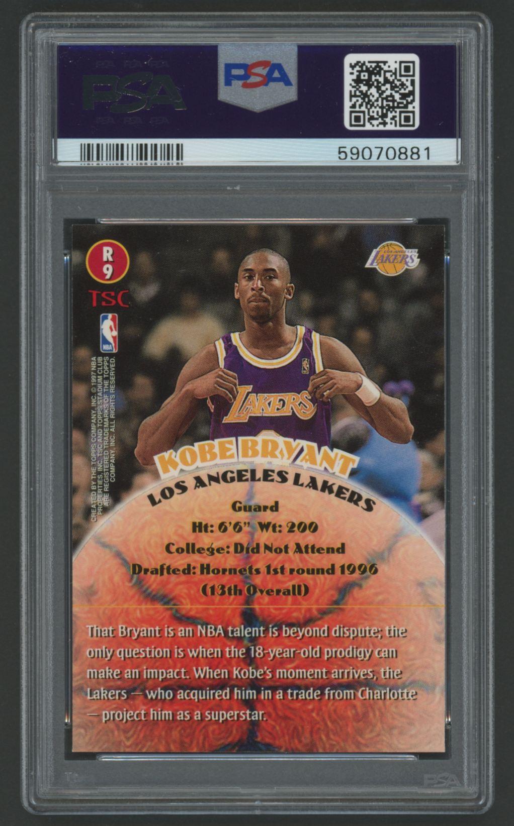 Kobe Bryant 1996 Stadium Club Rookies 2 #R9 (PSA 9)
