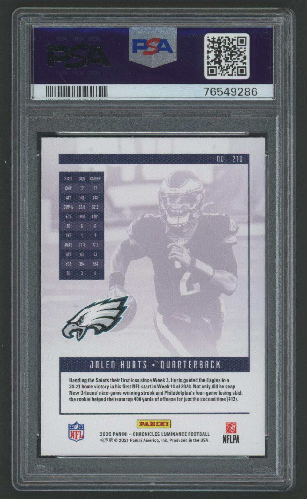 Jalen Hurts 2020 Panini Luminance Pink #210 RC / Chronicles (PSA 10)