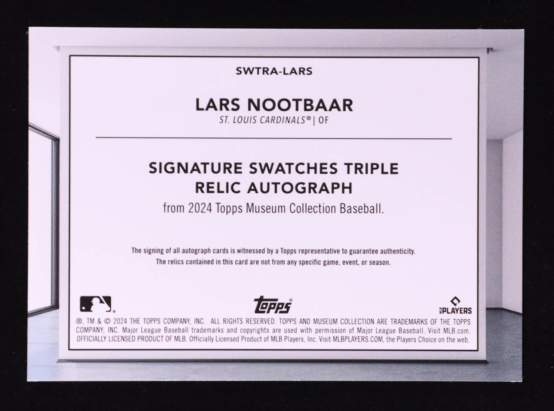 Lars Nootbaar 2024 Topps Museum Collection Signature Swatches Triple Relic Autographs #SWTRALARS #106/278