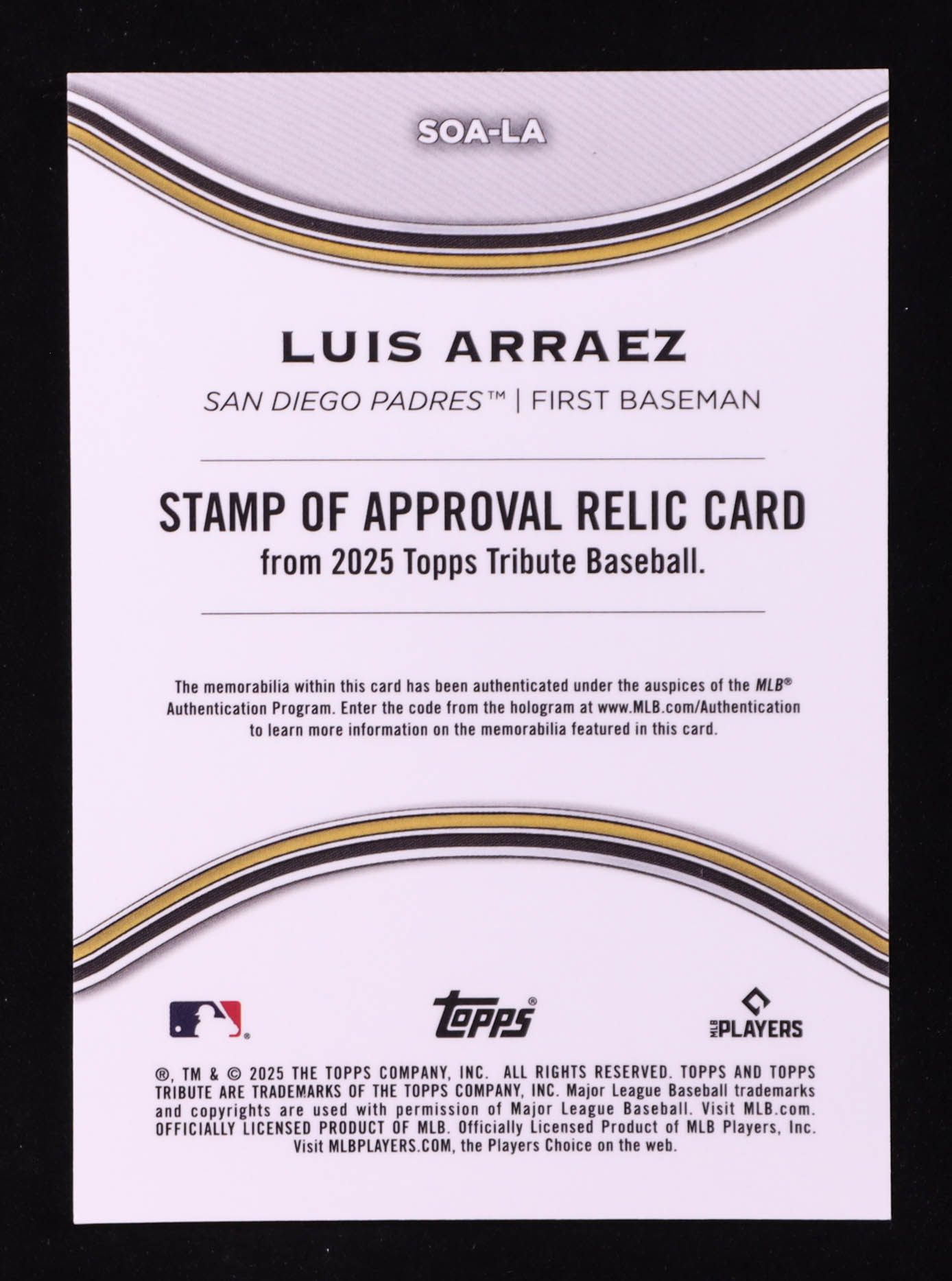 Luis Arraez 2025 Topps Tribute Stamp of Approval Relics Blue #SOALA #069/150