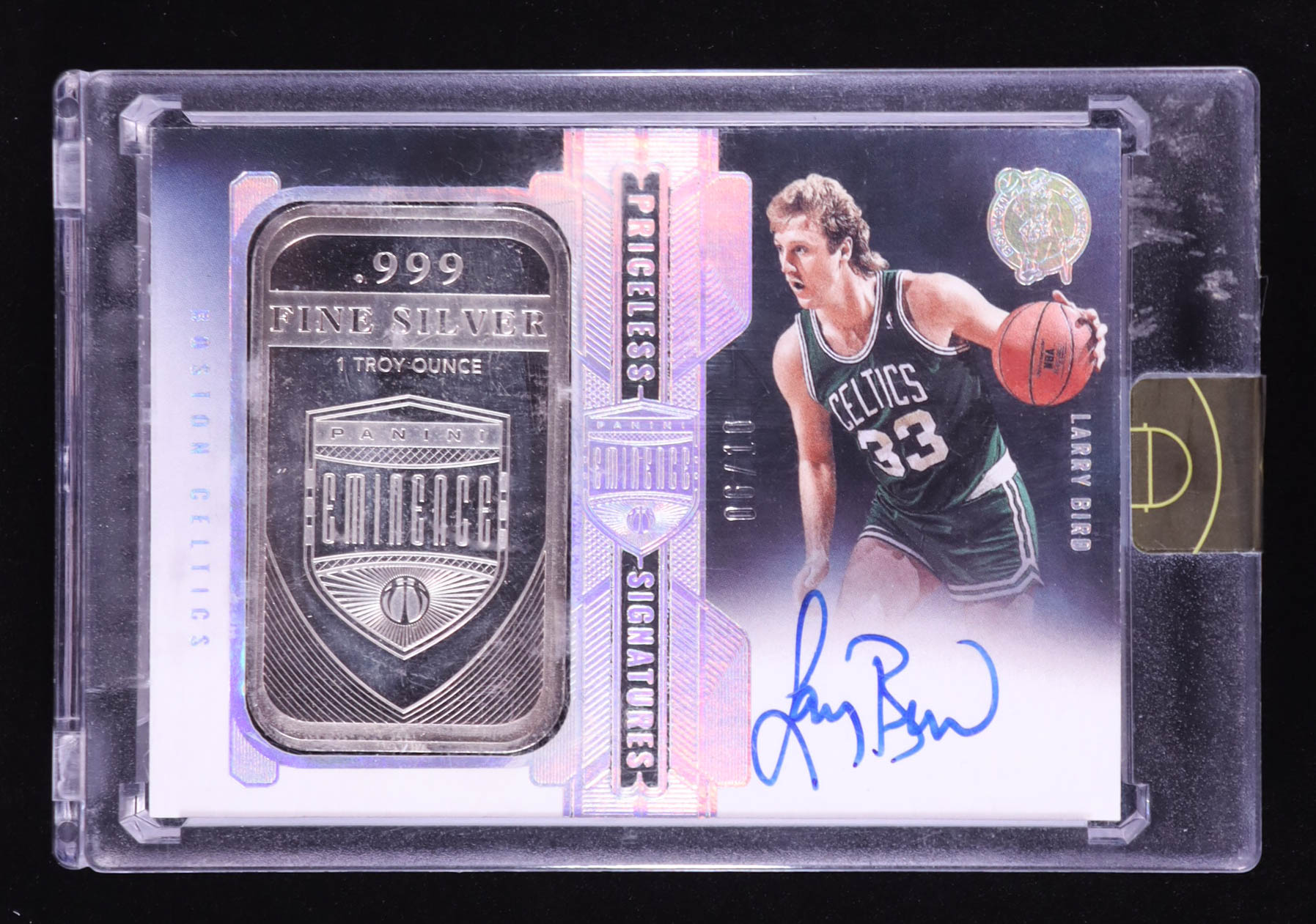 Larry Bird 2021-22 Panini Eminence Priceless Signatures Silver Bar #11 #06/10