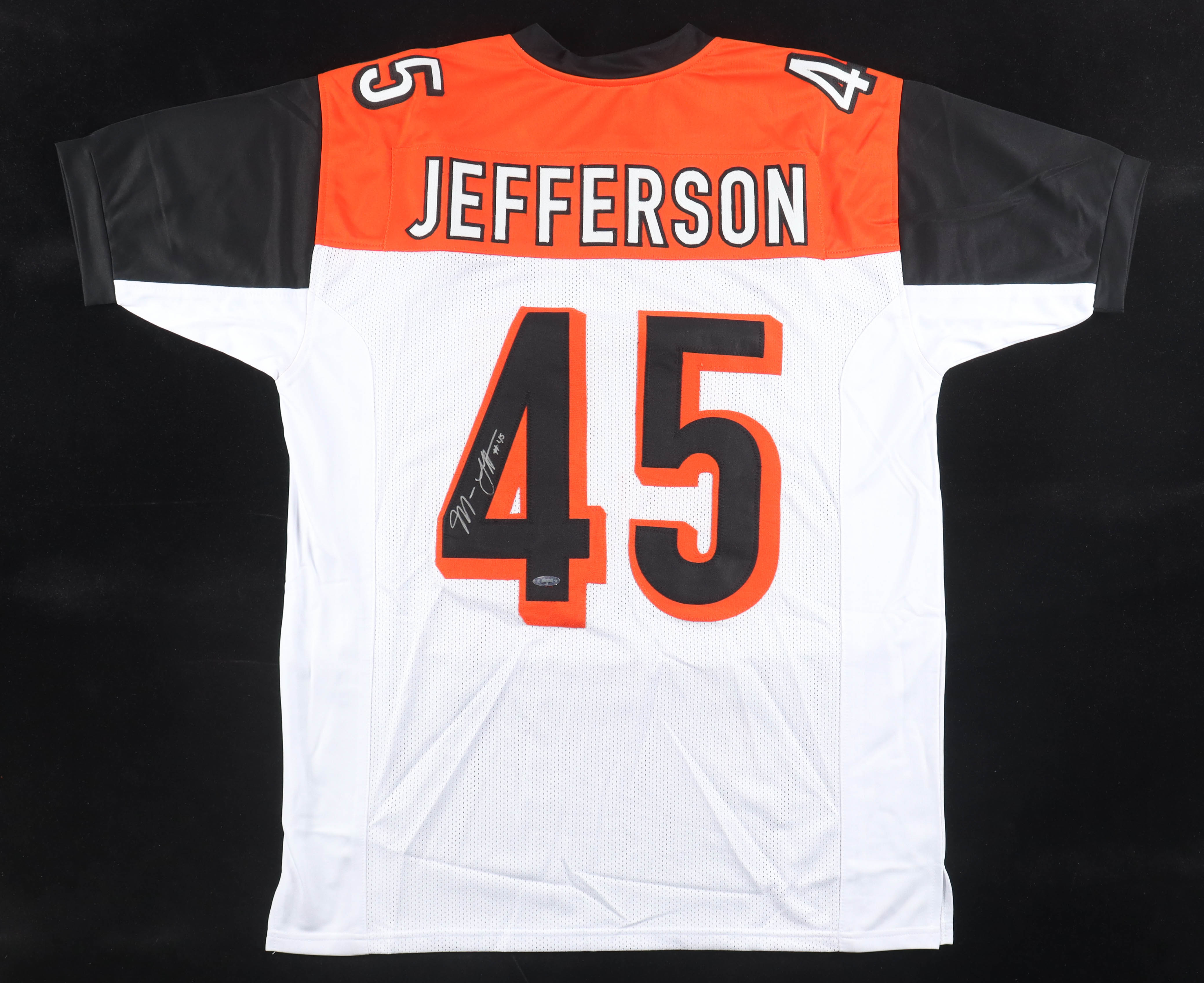 Custom jersey with everything sewn on, size XL. Hand-signed by Malik Jefferson (Cincinnati Bengals).